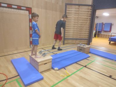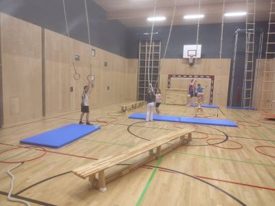 Wenn die Fr. Lehrerin der 2. Kl. mit ihren Schützlingen in den Turnsaal wandert, kann man etwas erleben: Da werden alle Geräte ausgepackt und aufgebaut, die der Turnraum zu bieten hat. An den Seilen schwingen, über Bänke balancieren, auf Sprossenwände klettern, an Ringen hängen und schaukeln, über Kästen springen uvm. Mit so vielfältigen Bewegungsmöglichkeiten macht…