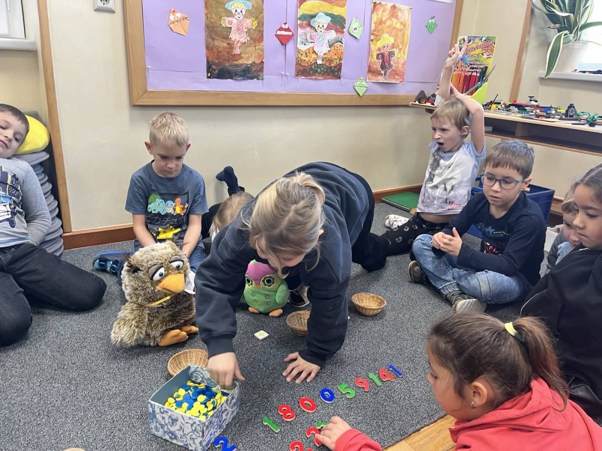 Schülerin Ellie hat Flügel, ist nachtaktiv, ziemlich frech, aber auch recht lustig, schläft und schnarcht manchmal während des Unterrichts. Neuerdings jedoch half sie beim Rechnen: Viele Rechnungen wurden gelegt und die Ergebnisse überprüft.