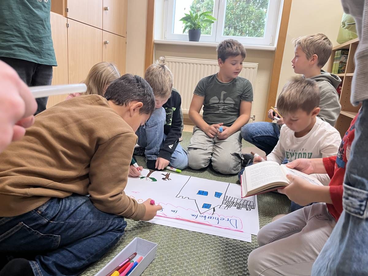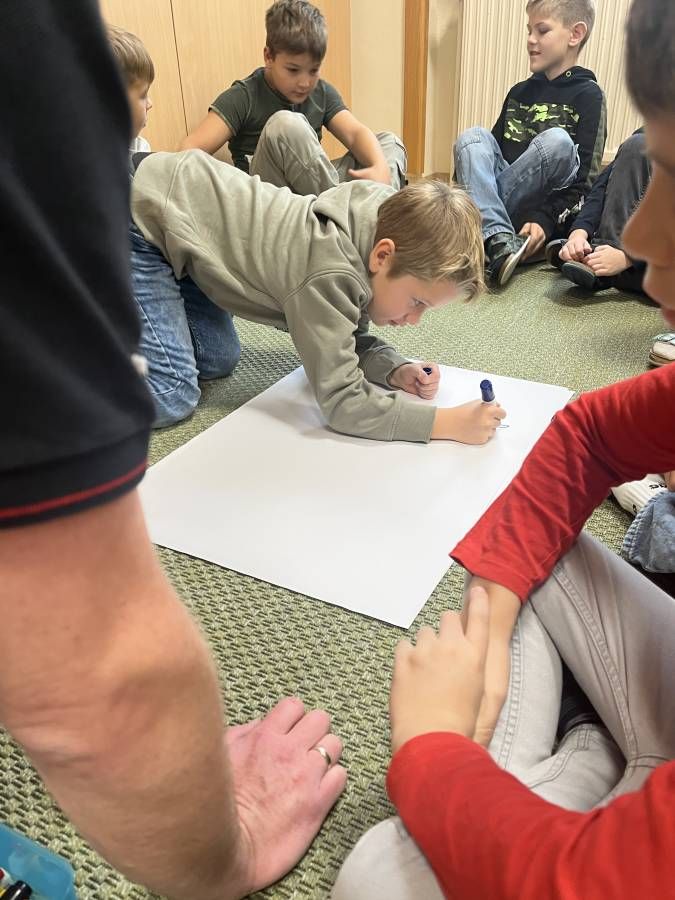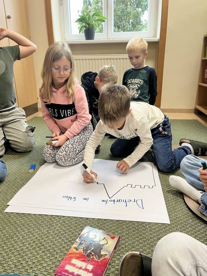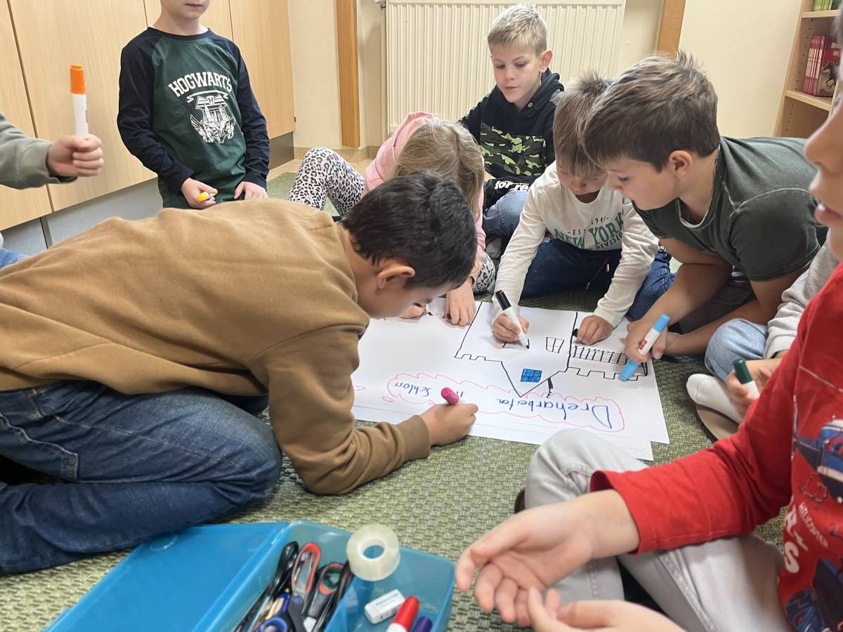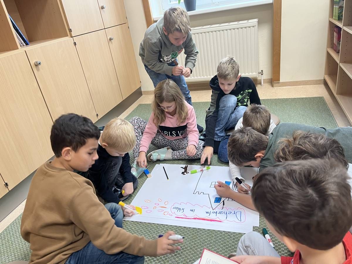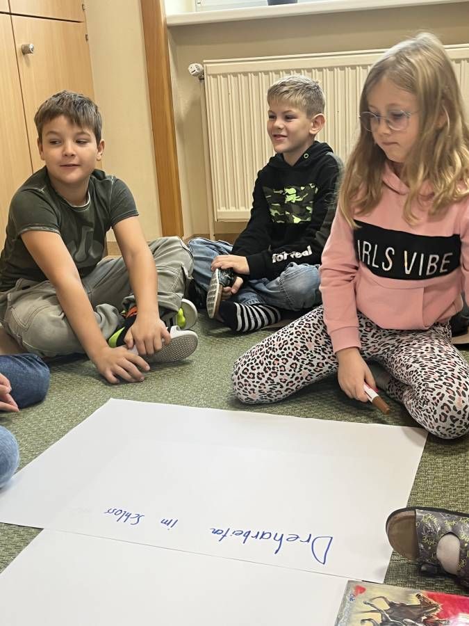 Plakate zu erstellen ist ein ganz schön kniffliger Vorgang. Das geht nicht von heute auf morgen, und vor allem muss man es gelernt haben. Unsere 3. Kl. ist bereits auf einem guten Weg ... irgendwann sollen wir ja immerhin auch Bücher präsentieren oder andere Themen referieren, dabei ist die visuelle Ergänzung durch ein Plakat nicht wegzudenken (immerhin sind die meisten Menschen im visuellen Bereich am besten geschult, merken sich daher Gesehenes am besten). Aber ein Plakat in der Klassengruppe zu herzustellen, erweist sich als kleine Herausforderung: Was der einen Gruppe gefällt, gilt noch lange nicht für die andere. Sich einigen zu müssen, auch andere Meinungen und Ideen zulassen zu können, sich zu bemühen um der anderen Willen, zurückhaltend oder richtungsweisend zu sein, all das sind nebenbei die sozialen Kompetenzen, die wir hier trainieren. Ich denke aber, für den Beginn kann sich das Ergebnis sehen lassen!