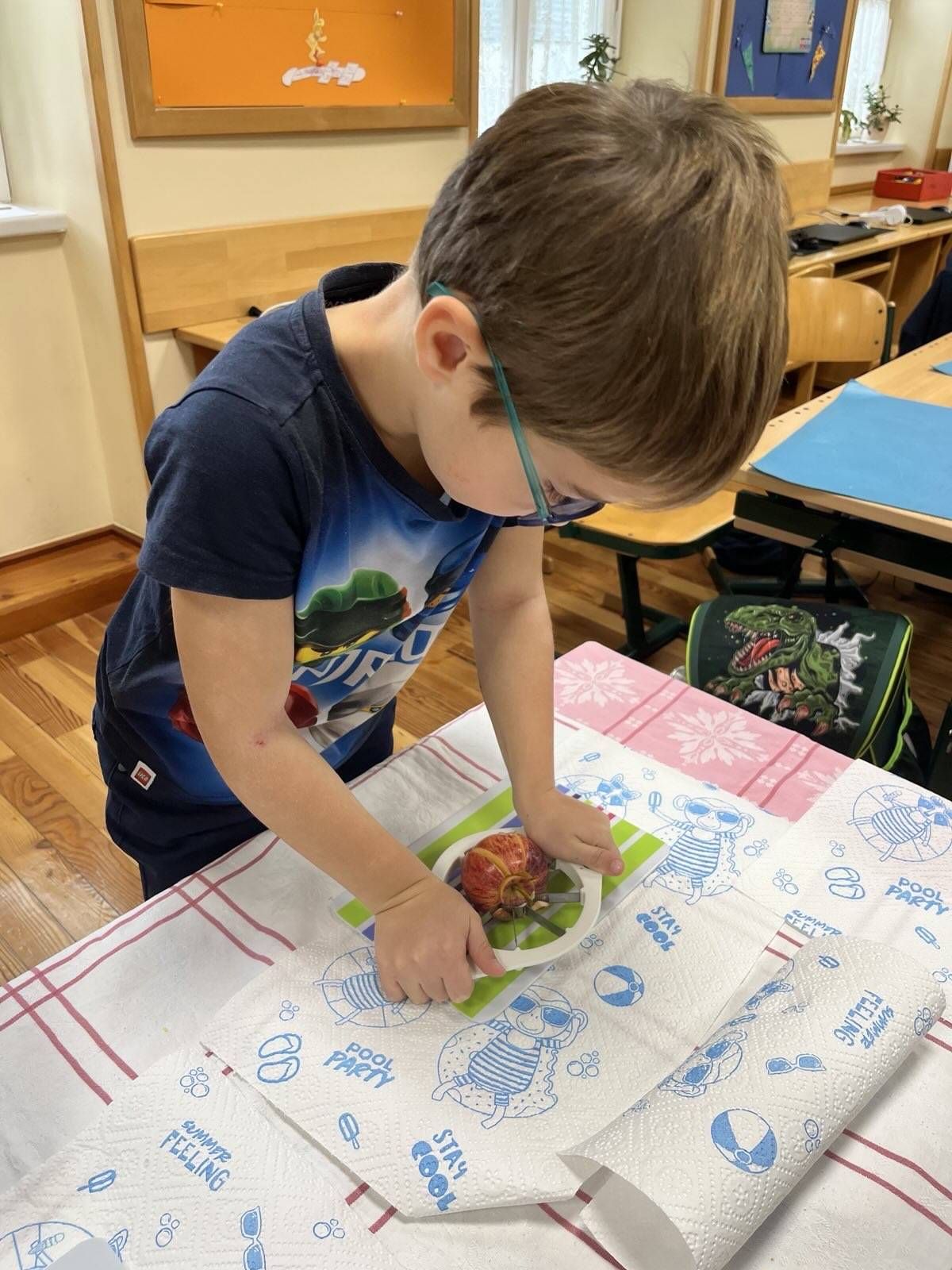 Auch heuer starten wir wieder unsere Reise durch das Alphabet in der 1. Kl. Wie kann man Buchstaben und deren Laut besser mit vertrauten Dingen verbinden als mit Aktivitäten aus dem Leben - und wenn man dabei auch noch etwas zu essen oder zu trinken bekommt, "zieht das alles viel nachhaltiger in unser Gehirn ein". So wird ein Apfel in gleiche Teile geschnitten (beim Teilen muss es ja auch immer gerecht zugehen) und der Saft aus der Orange gequetscht. Zum Schluss wird alles mit großem Genuss verzehrt ... und die Erfahrungen werden hoffentlich noch lange in unserem Gedächtnis gespeichert.