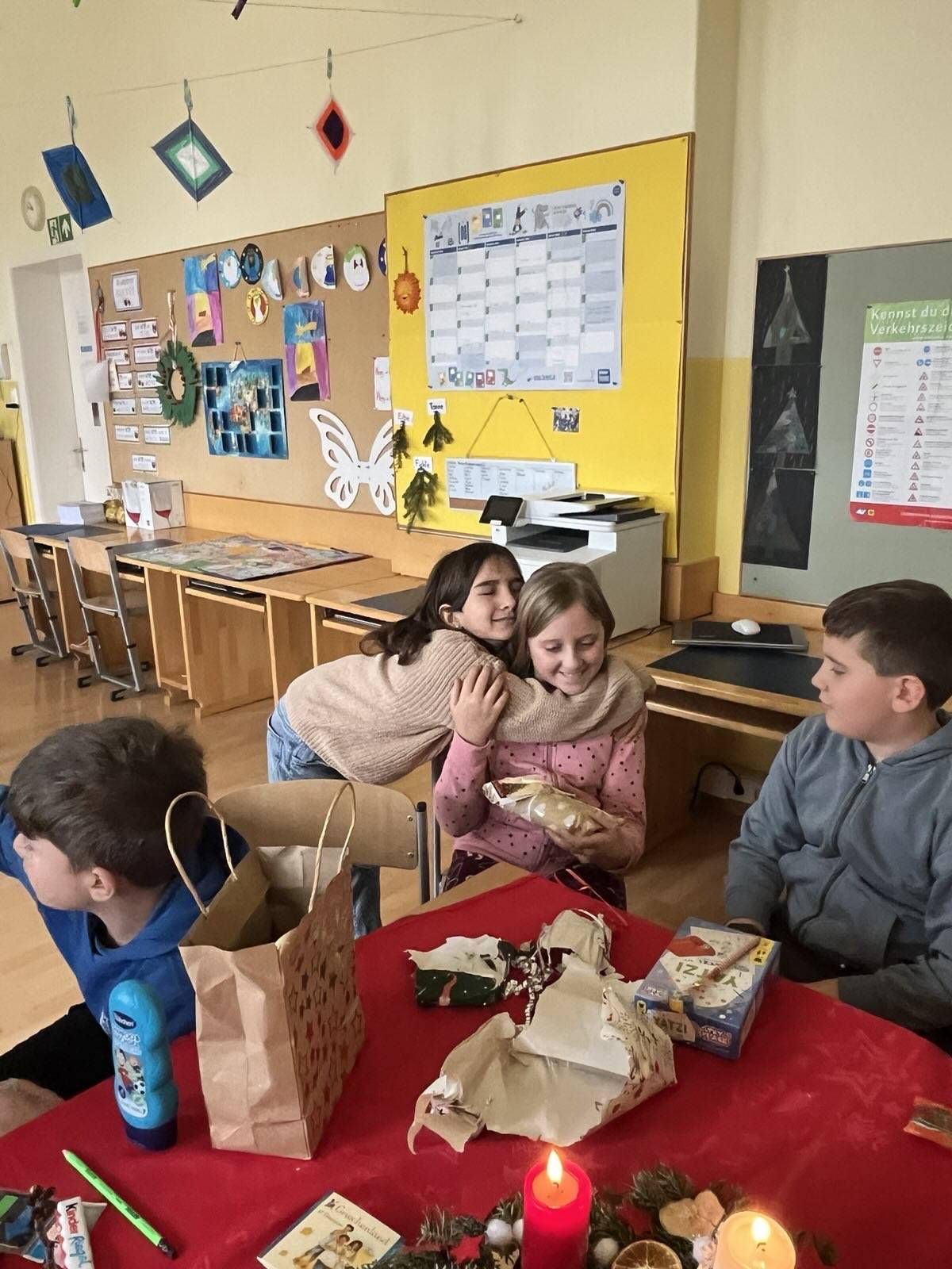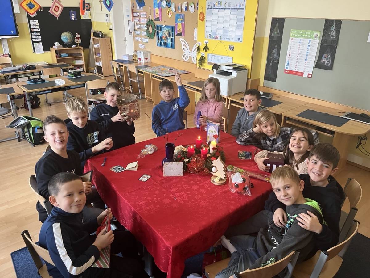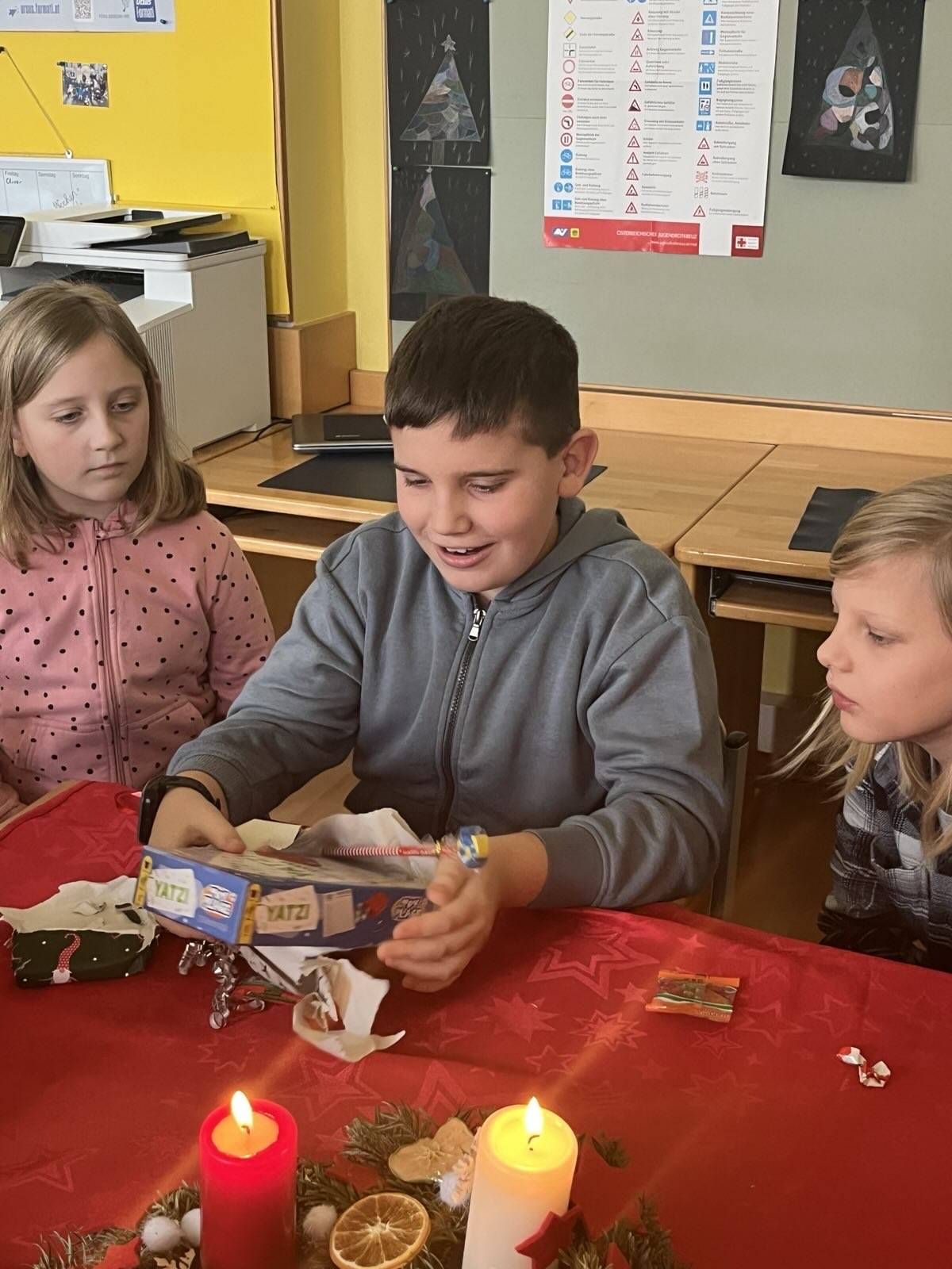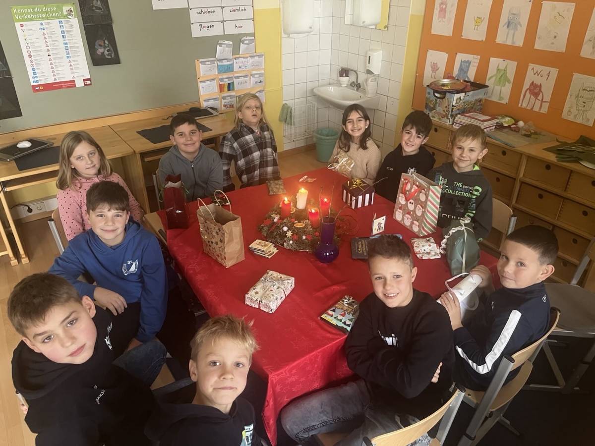 Am letzten Tag vor den Weihnachtsferien durften die Geschenke dann am feierlich geschmückten Weihnachtstisch übergeben werden - und wie schön ist es mitanzusehen, wie die Freude über das Herschenken so viel größer ist als jene über die erhaltene Kleinigkeit!