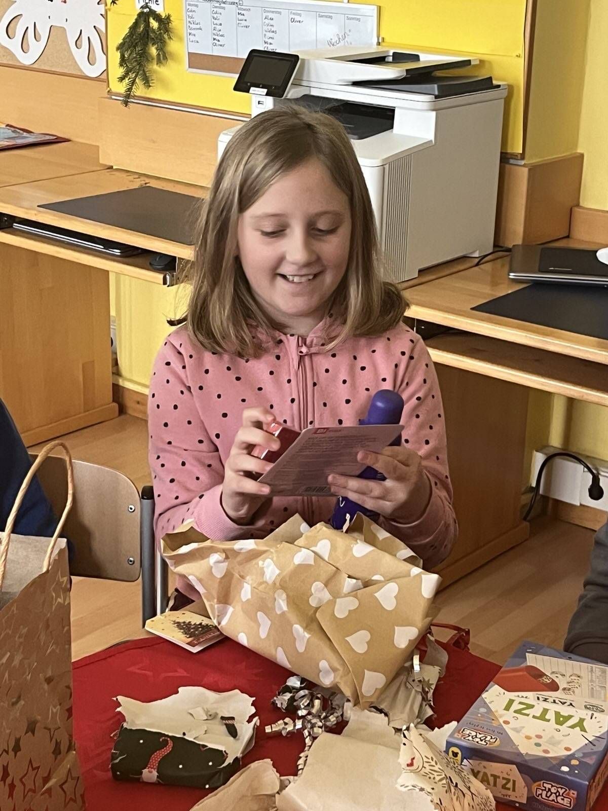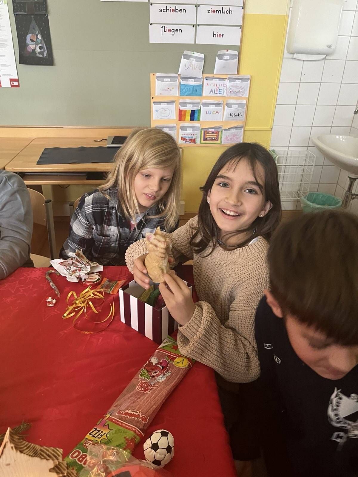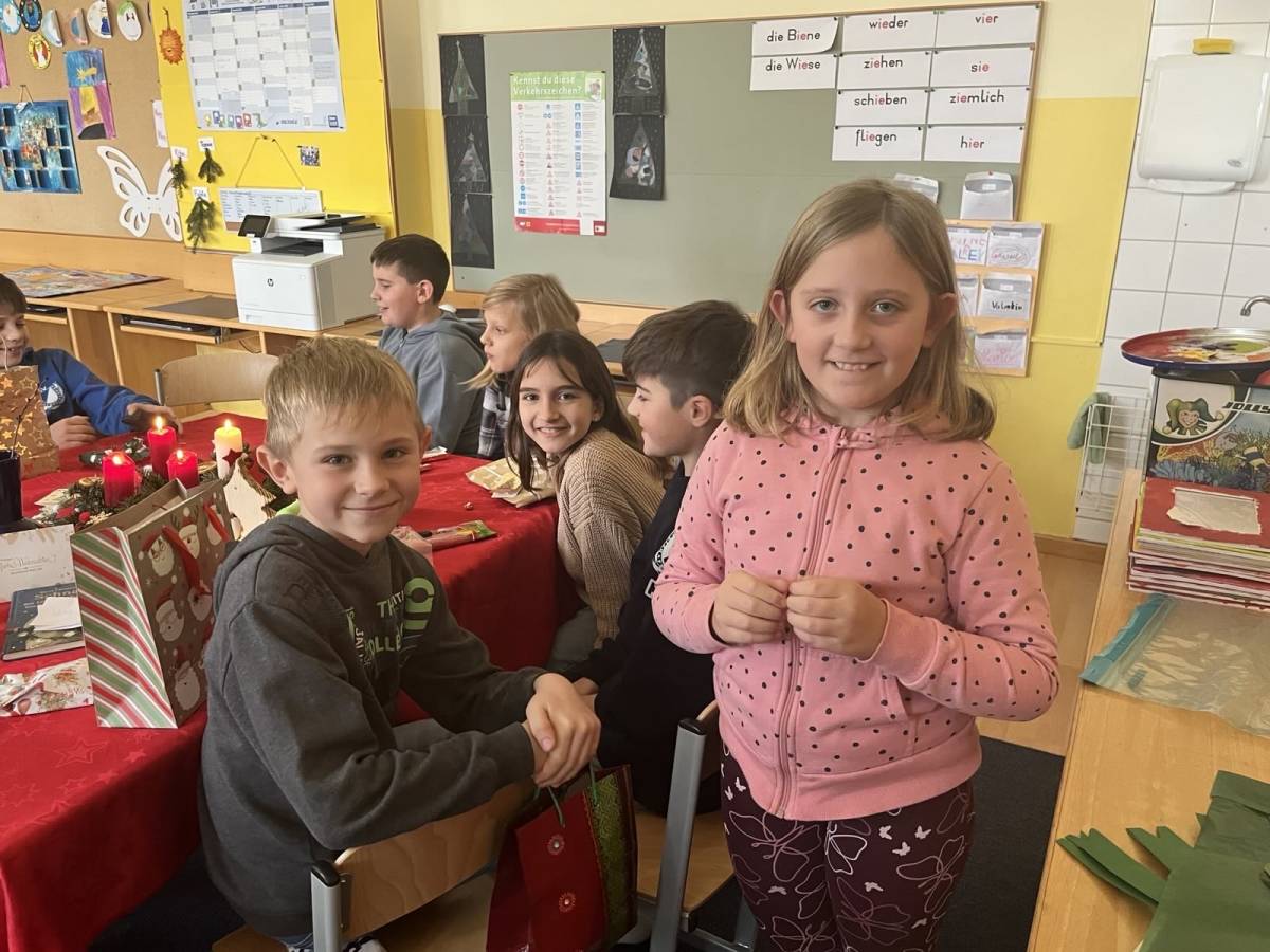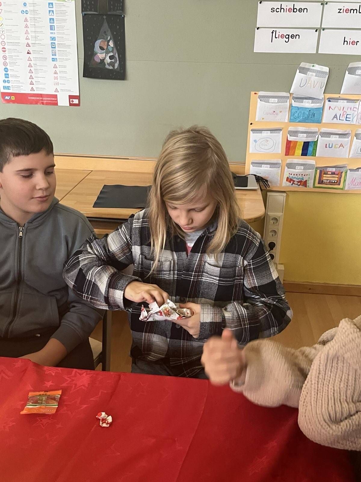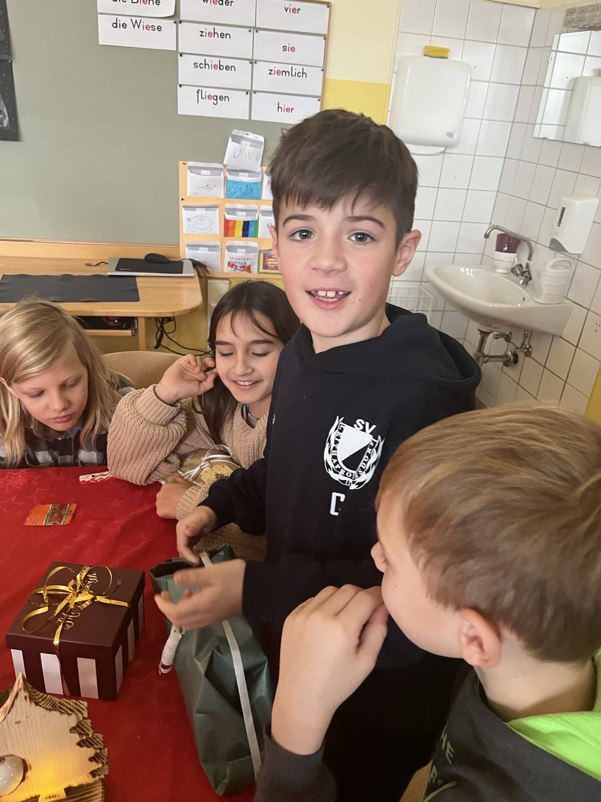 Am letzten Tag vor den Weihnachtsferien durften die Geschenke dann am feierlich geschmückten Weihnachtstisch übergeben werden - und wie schön ist es mitanzusehen, wie die Freude über das Herschenken so viel größer ist als jene über die erhaltene Kleinigkeit!