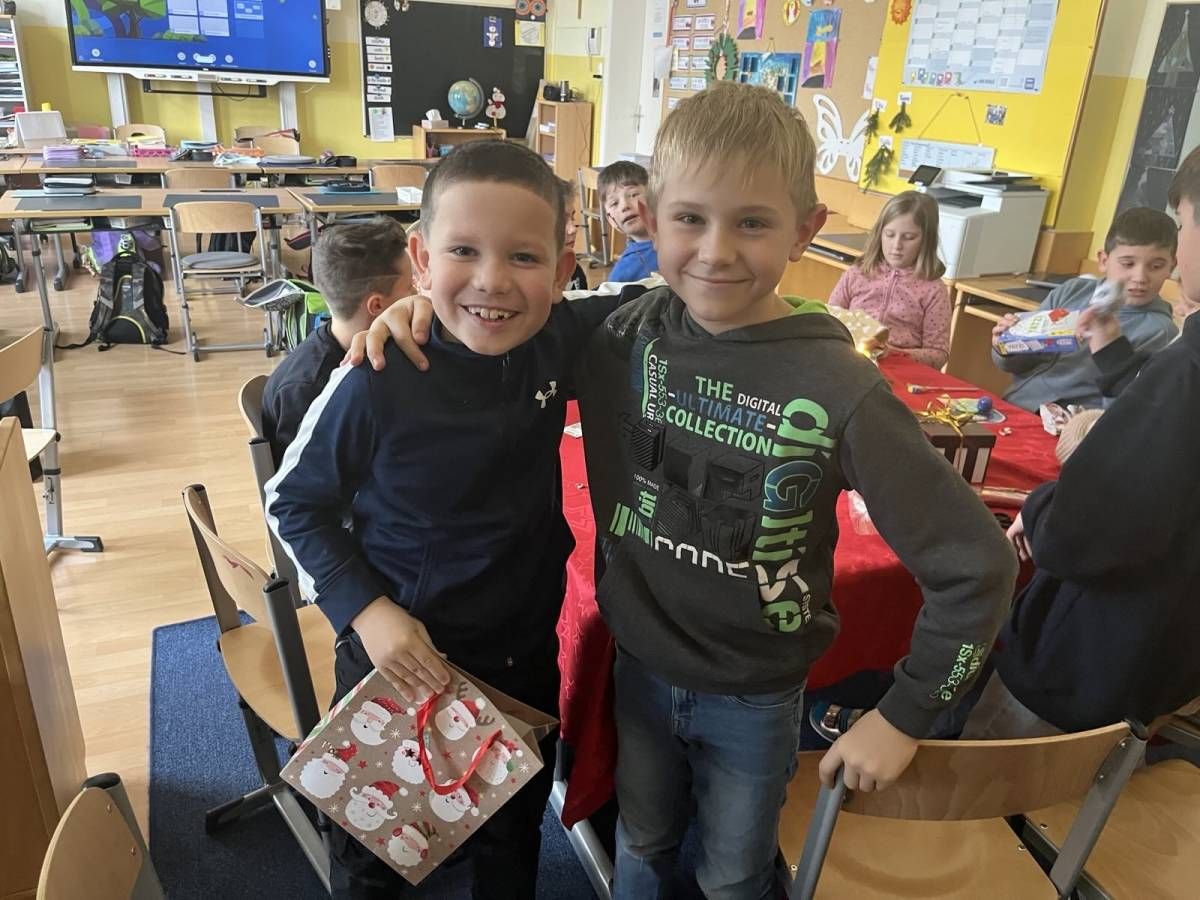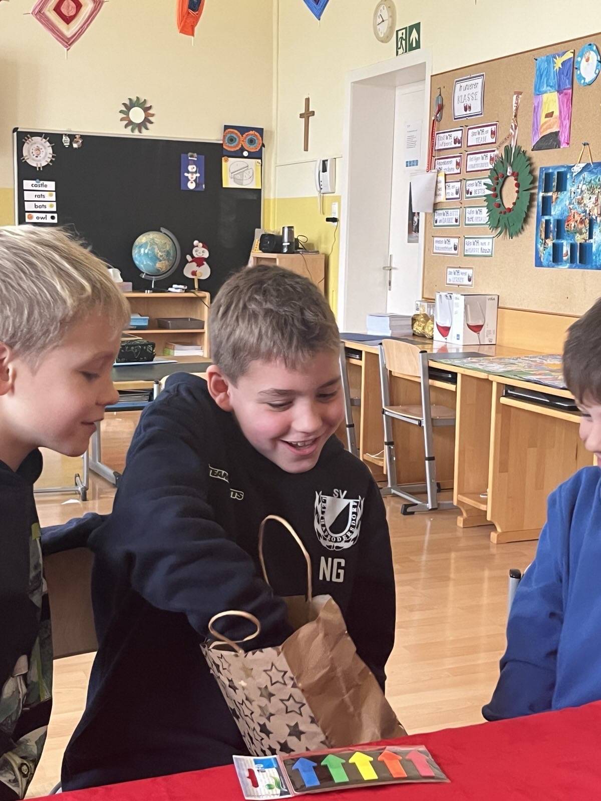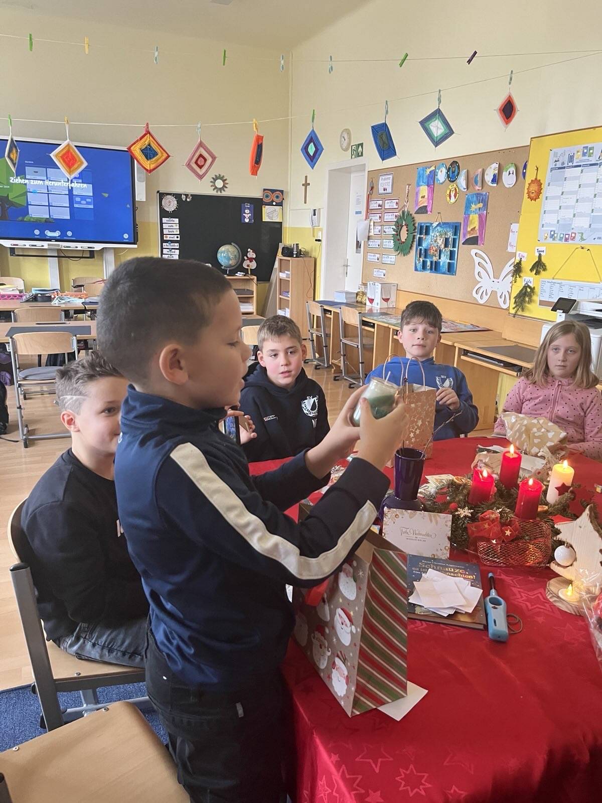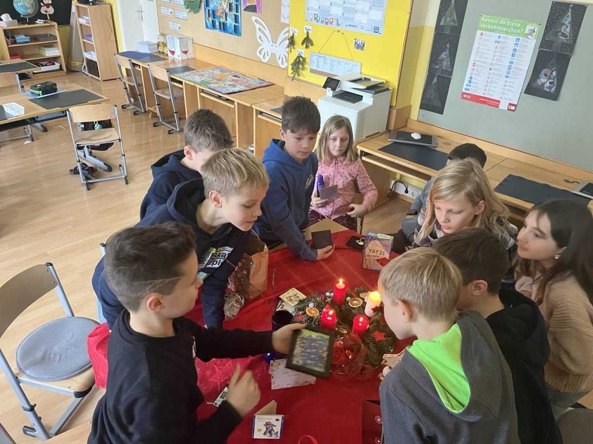 Am letzten Tag vor den Weihnachtsferien durften die Geschenke dann am feierlich geschmückten Weihnachtstisch übergeben werden - und wie schön ist es mitanzusehen, wie die Freude über das Herschenken so viel größer ist als jene über die erhaltene Kleinigkeit!