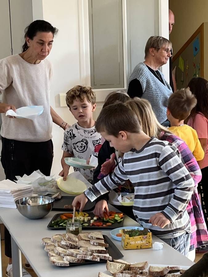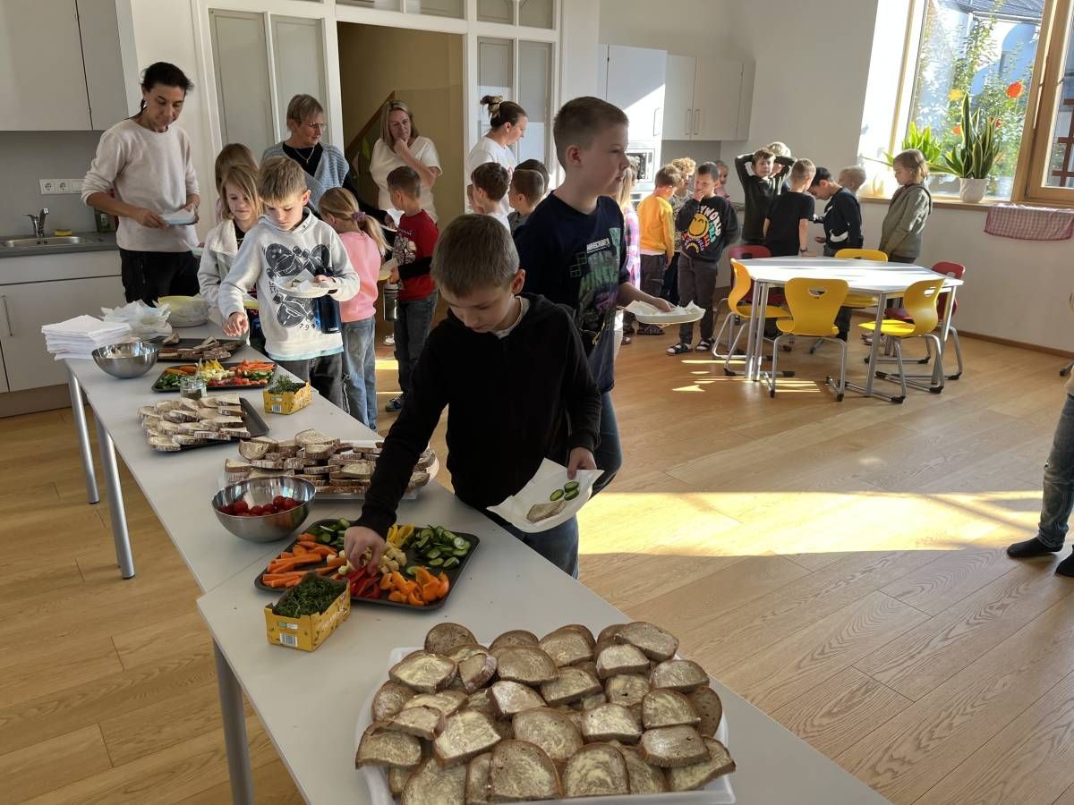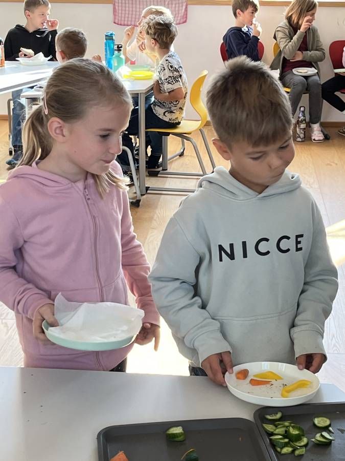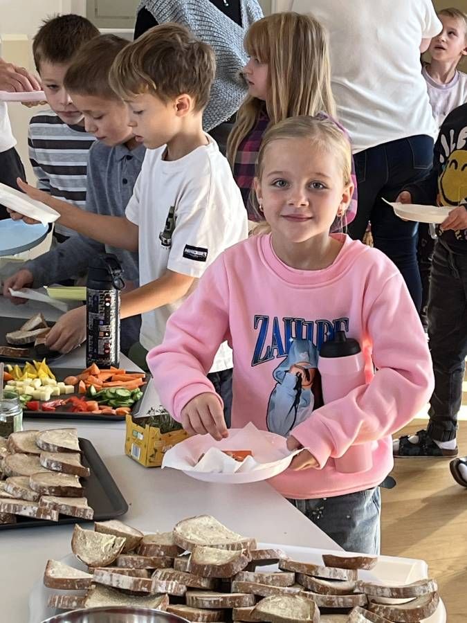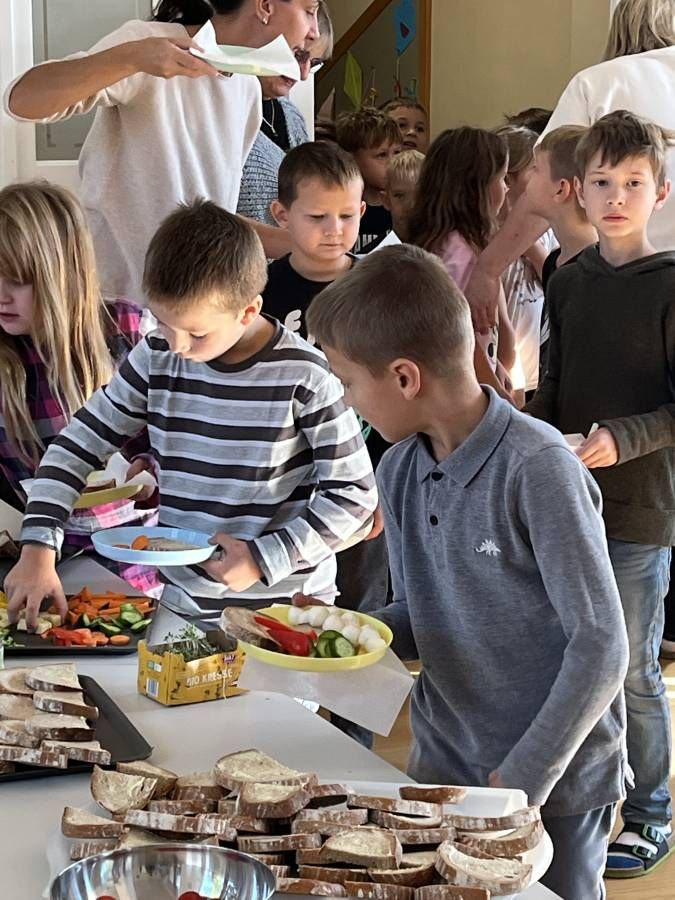 Auch heuer werden wir wieder unsere Sozialkontakte mit allen Kindern unserer Schule pflegen - und genau das machen wir monatlich, wenn es wieder heißt: "Kinder, es ist angerichtet, kommt zu Tisch!" An diesen Freitagen versammeln sich alle Kinder und Lehrer/innen in der "Begegnungszone" der VS DB, wo unsere Fr. REL in ihrer Freistunde mit einer Kindergruppe die gesunde Jause vorbereitet. Und das wird sich nie ändern: In der Gruppe schmeckt's einfach dreimal so gut ;-)