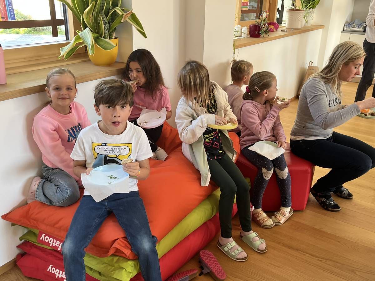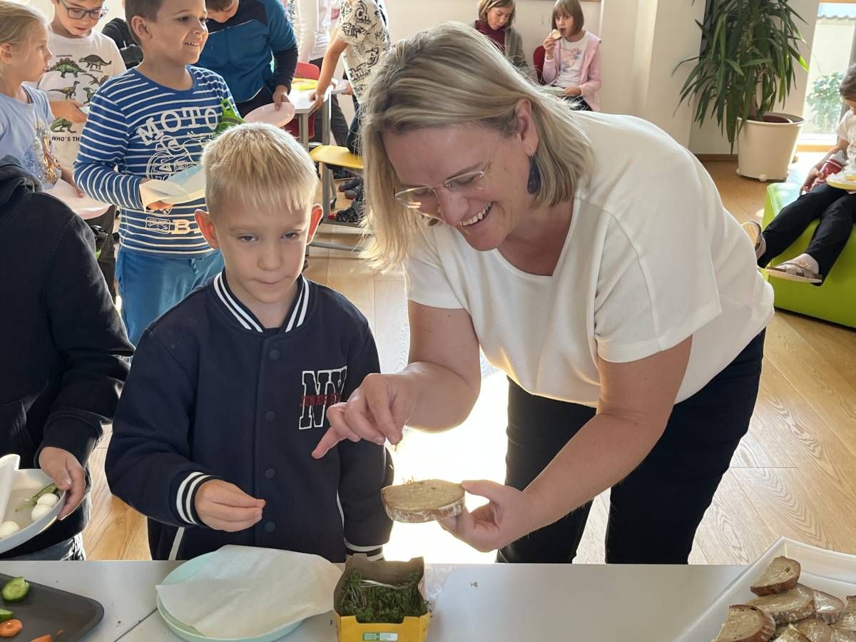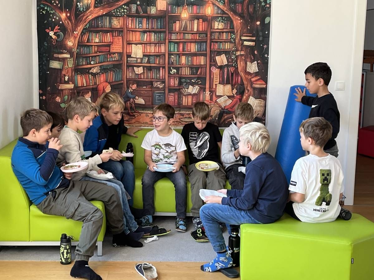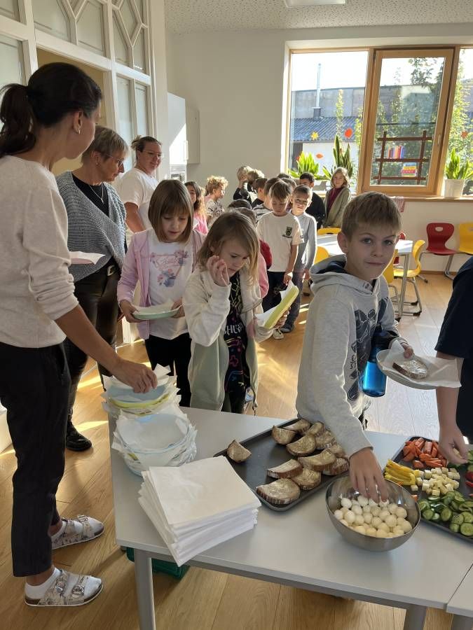 Auch heuer werden wir wieder unsere Sozialkontakte mit allen Kindern unserer Schule pflegen - und genau das machen wir monatlich, wenn es wieder heißt: "Kinder, es ist angerichtet, kommt zu Tisch!" An diesen Freitagen versammeln sich alle Kinder und Lehrer/innen in der "Begegnungszone" der VS DB, wo unsere Fr. REL in ihrer Freistunde mit einer Kindergruppe die gesunde Jause vorbereitet. Und das wird sich nie ändern: In der Gruppe schmeckt's einfach dreimal so gut ;-)
