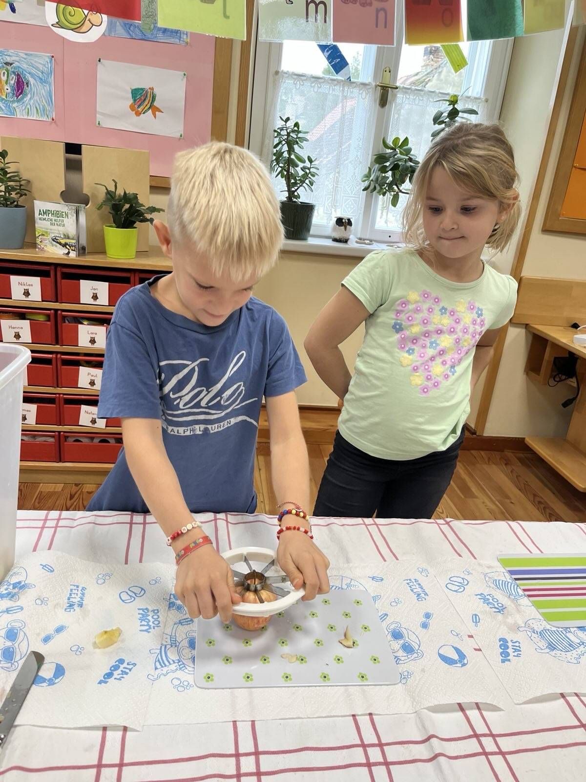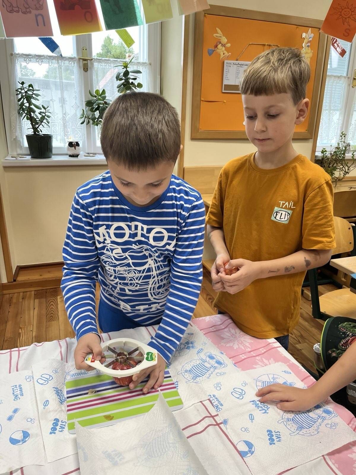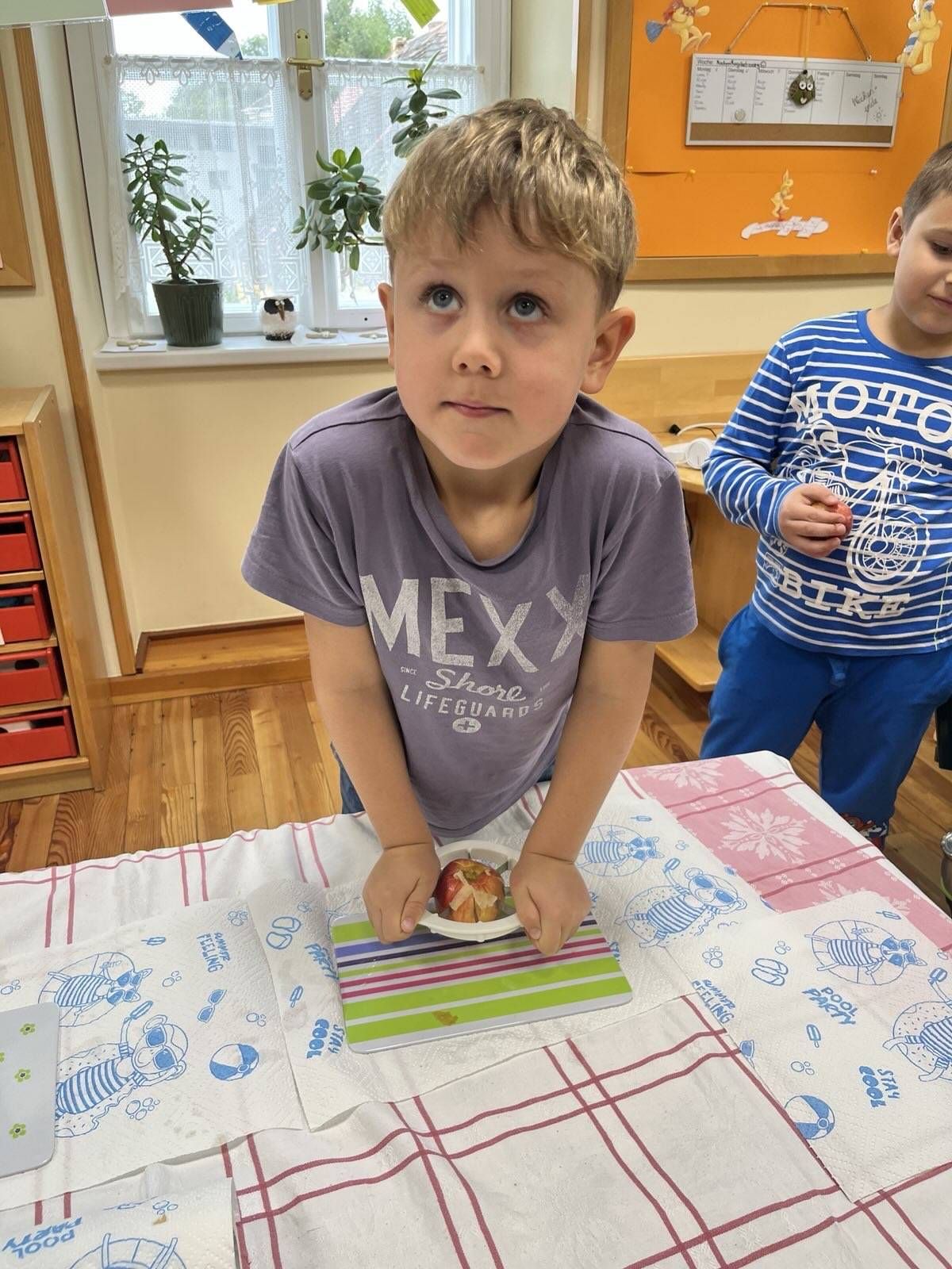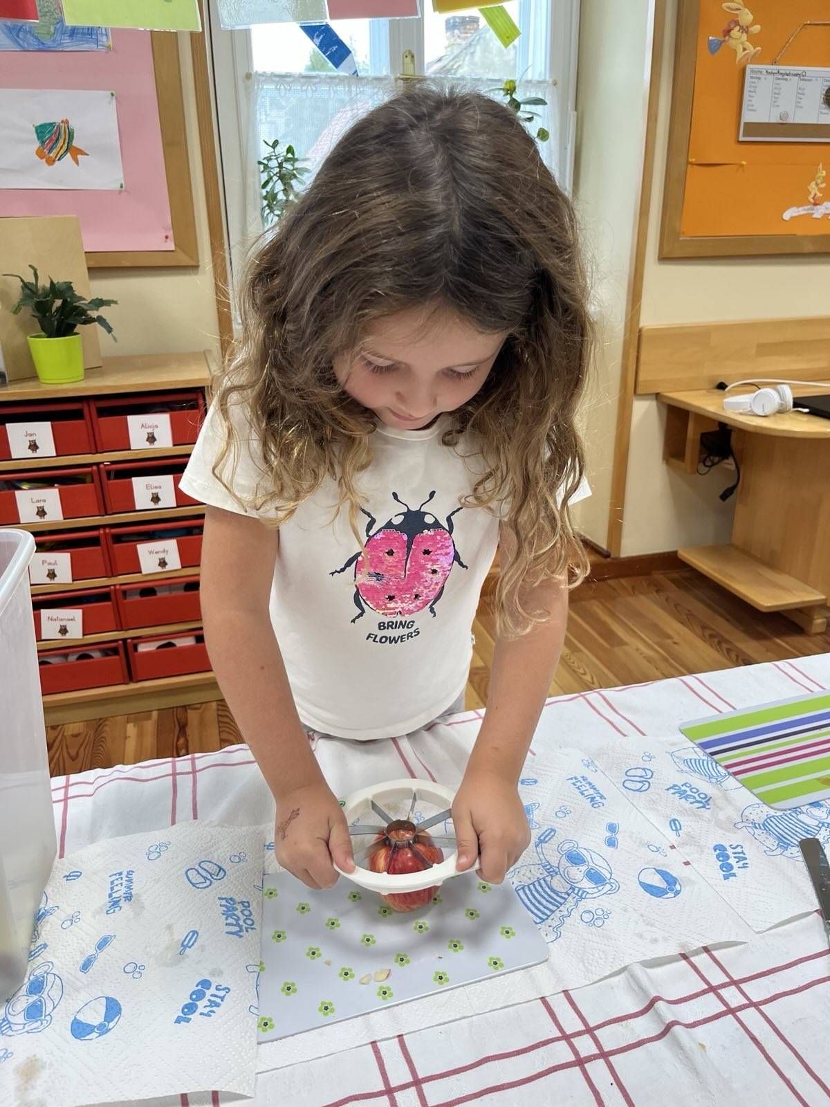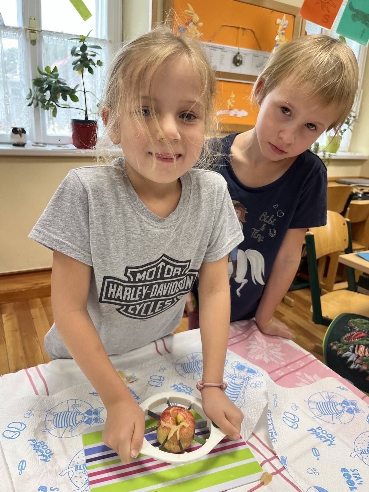 Auch heuer starten wir wieder unsere Reise durch das Alphabet in der 1. Kl. Wie kann man Buchstaben und deren Laut besser mit vertrauten Dingen verbinden als mit Aktivitäten aus dem Leben - und wenn man dabei auch noch etwas zu essen oder zu trinken bekommt, "zieht das alles viel nachhaltiger in unser Gehirn ein". So wird ein Apfel in gleiche Teile geschnitten (beim Teilen muss es ja auch immer gerecht zugehen) und der Saft aus der Orange gequetscht. Zum Schluss wird alles mit großem Genuss verzehrt ... und die Erfahrungen werden hoffentlich noch lange in unserem Gedächtnis gespeichert.