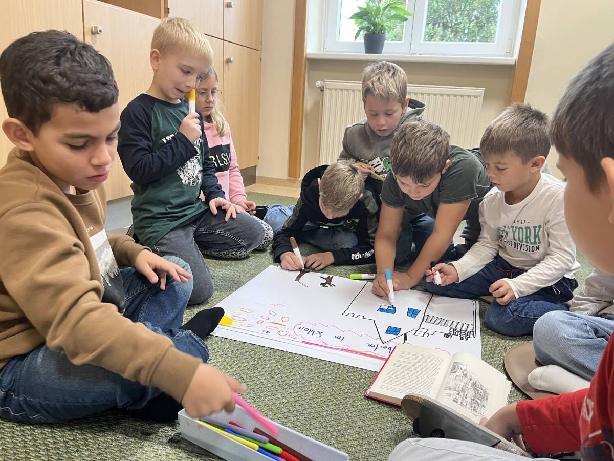 Plakate zu erstellen ist ein ganz schön kniffliger Vorgang. Das geht nicht von heute auf morgen, und vor allem muss man es gelernt haben. Unsere 3. Kl. ist bereits auf einem guten Weg ... irgendwann sollen wir ja immerhin auch Bücher präsentieren oder andere Themen referieren, dabei ist die visuelle Ergänzung durch ein Plakat nicht wegzudenken (immerhin sind die meisten Menschen im visuellen Bereich am besten geschult, merken sich daher Gesehenes am besten). Aber ein Plakat in der Klassengruppe zu herzustellen, erweist sich als kleine Herausforderung: Was der einen Gruppe gefällt, gilt noch lange nicht für die andere. Sich einigen zu müssen, auch andere Meinungen und Ideen zulassen zu können, sich zu bemühen um der anderen Willen, zurückhaltend oder richtungsweisend zu sein, all das sind nebenbei die sozialen Kompetenzen, die wir hier trainieren. Ich denke aber, für den Beginn kann sich das Ergebnis sehen lassen!
