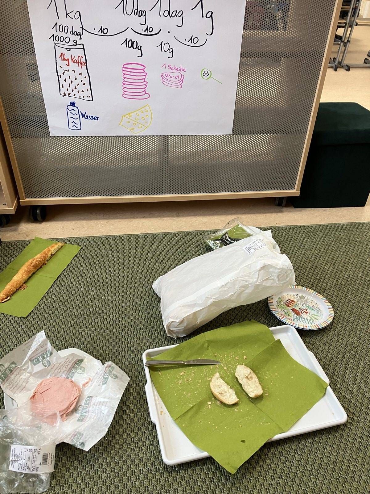 Und nichts einfacher als das: Ganz schnell einmal 10 Semmeln, 50 dag Wurst, ein paar Messer und viel Hunger - Resultat: "Eine Wurstsemmel wiegt ungefähr 5 dag und damit hab ich nicht genug, wenn der Hunger nach 2 Stunden in der Schule groß ist."