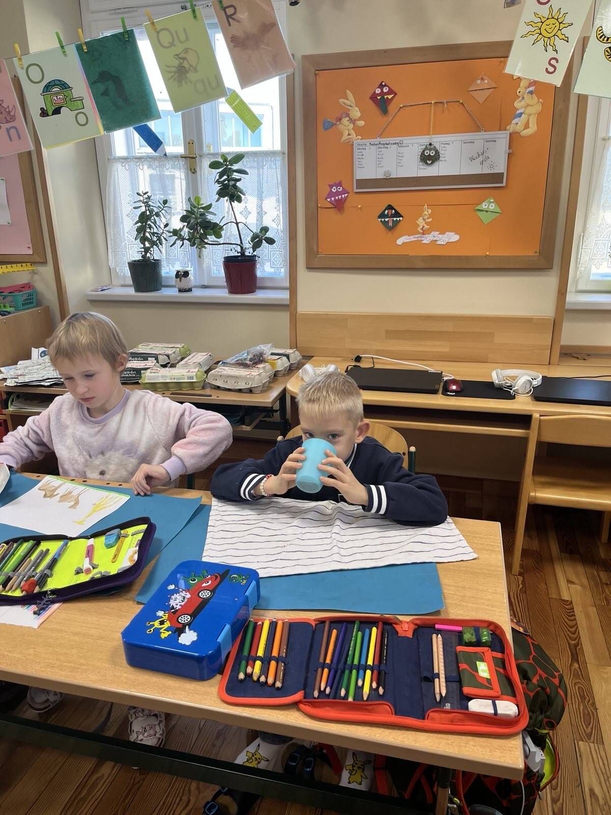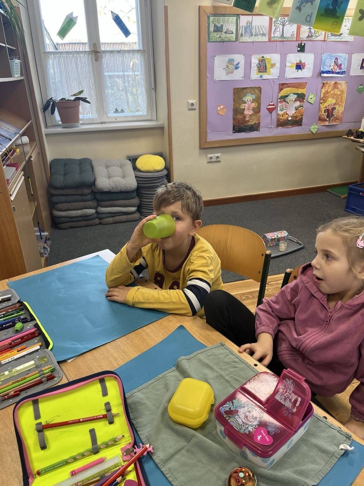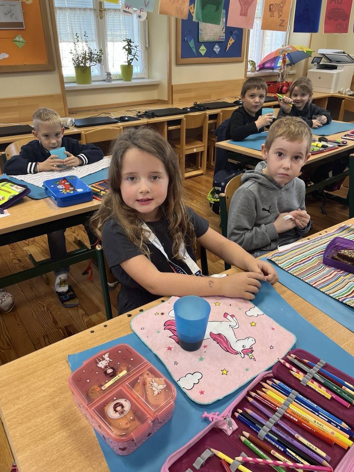 Einen neuen Buchstaben muss man hören, sehen, fühlen, spüren und vor allem natürlich auch schmecken. Was also anderes tun, wenn man das "T" lernt, als einen wohlschmeckenden Tee zu kochen? Und genau das haben unsere Buchstabenjäger/innen gemacht ... ach wie gut Tee doch in der Schule mit allen Kolleginnen und Kollegen schmeckt!