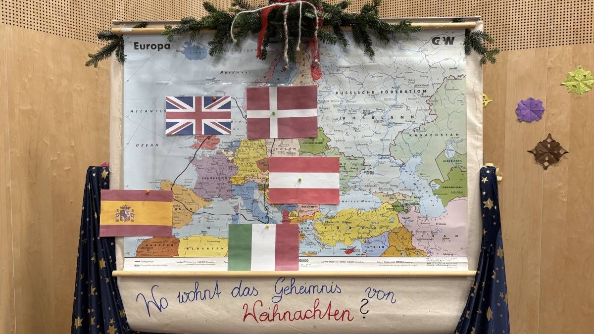 ... und das genau am Freitag vor dem 1. Adventwochenende bei uns in der Schule. An diesem Abend durften wir alle als Passagiere in einer Boeing der Austrian Airlines eine Reise quer durch Europa unternehmen, wo wir dem Geheimnis von Weihnachten auf die Spur kommen wollten. Nach vielen Erlebnissen mit den versch. Bräuchen in den europ. Ländern haben wir das Geheimnis schließlich gefunden: das Jesuskind in der Krippe bei uns in Österreich. Und dass Weihnachten ein Fest ist, das dann am schönsten ist, wenn wir es in der Gemeinschaft feiern, war auch in diesem Jahr eine wichtige Erkenntnis.