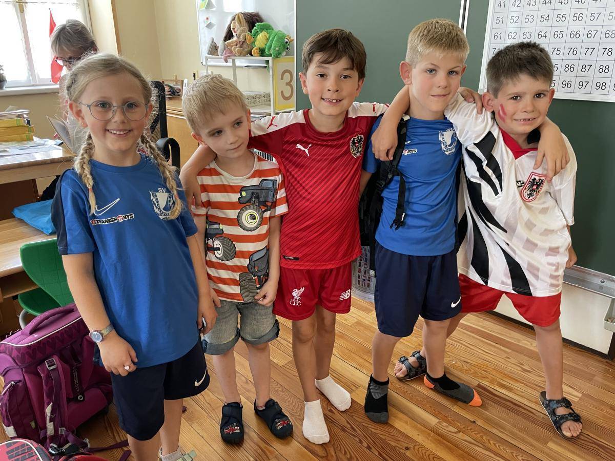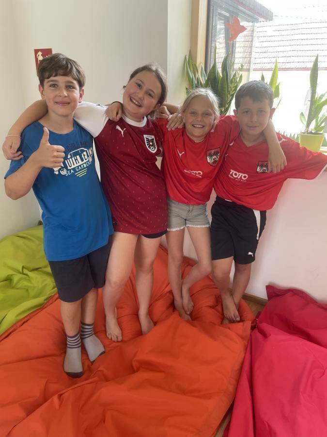 Auch bei uns in der Schule ist die EM 2024 hoch im Kurs - da wird diskutiert, philosophiert, Toren hinterhergejagt, die neueste Dress gekauft, mit Spielergebnissen gerechnet, die Flaggen den entsprechenden Ländern zugeordnet, gegrübelt, wer noch wie lange spielen wird, weil so mancher Top-Fußballspieler schon ein bestimmtes Alter erreicht hat ... aber eines ist sicher: Wir halten alle zusammen, wenn es um unsere Nationalmannschaft geht. Und nachdem wir die Niederländer nach 34 Jahren endlich in Flucht geschlagen haben, durften alle zur Feier des Tages mit ihrer sportlichen Lieblingskleidung zur Schule kommen. Halten wir unserer 11 mit ihrer Spitze Trainer Rangnick nun fest die Daumen fürs Spiel um den Einzug ins Viertelfinale gegen die Türkei - am Dienstag!