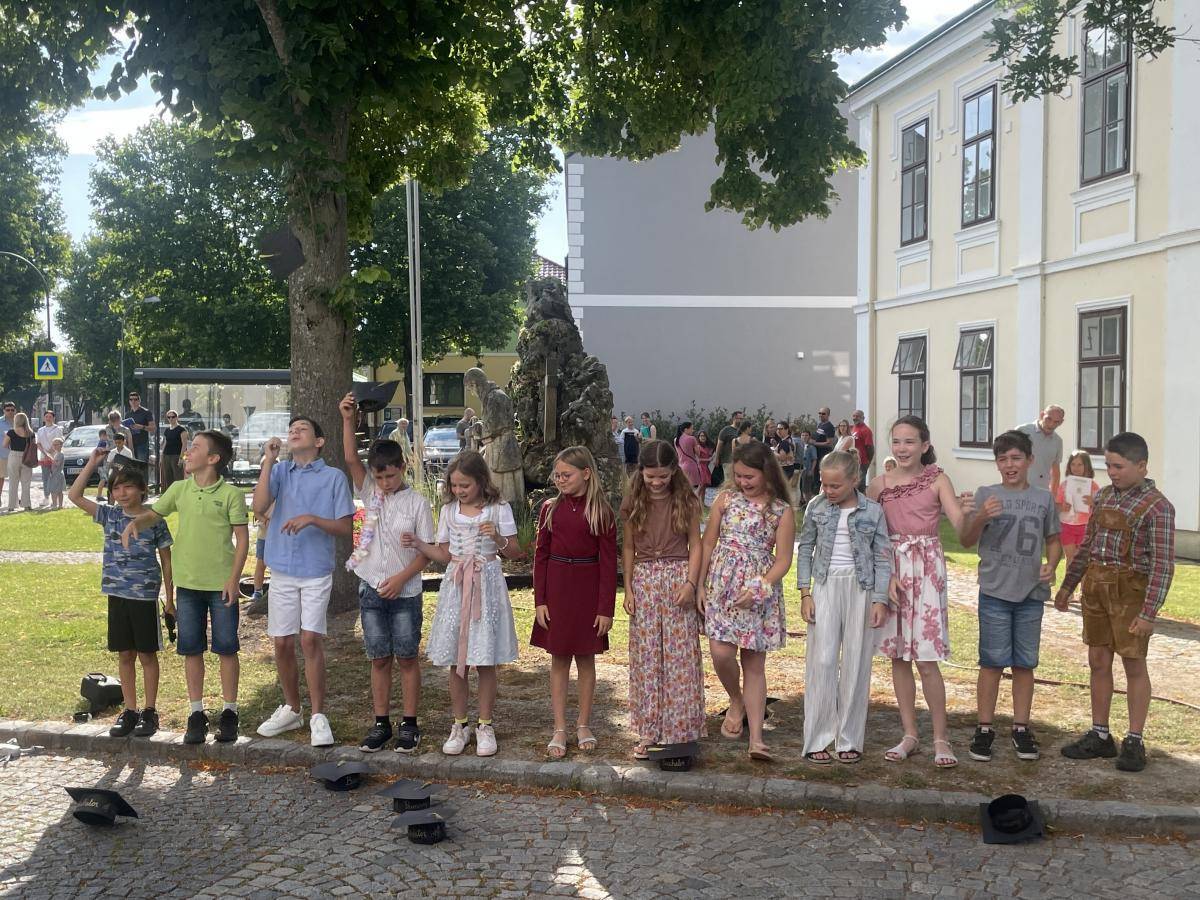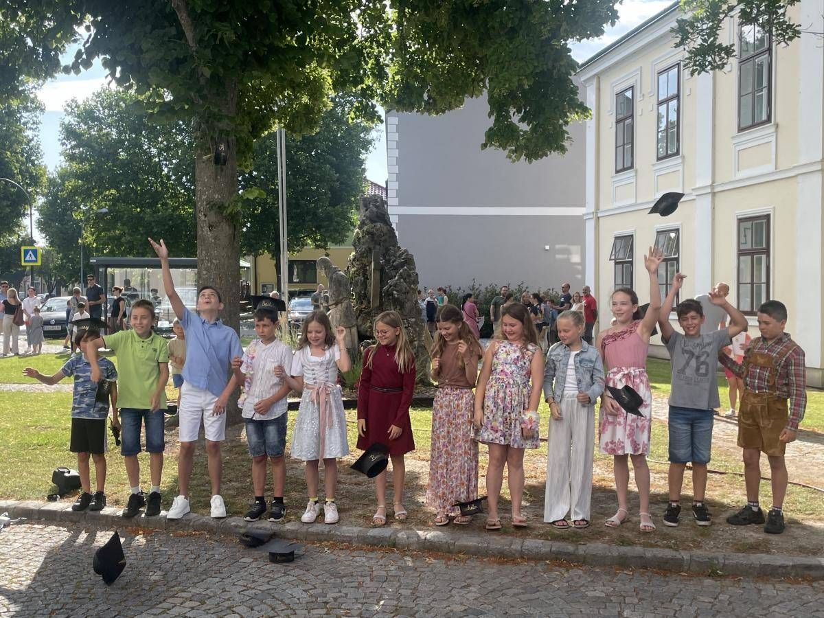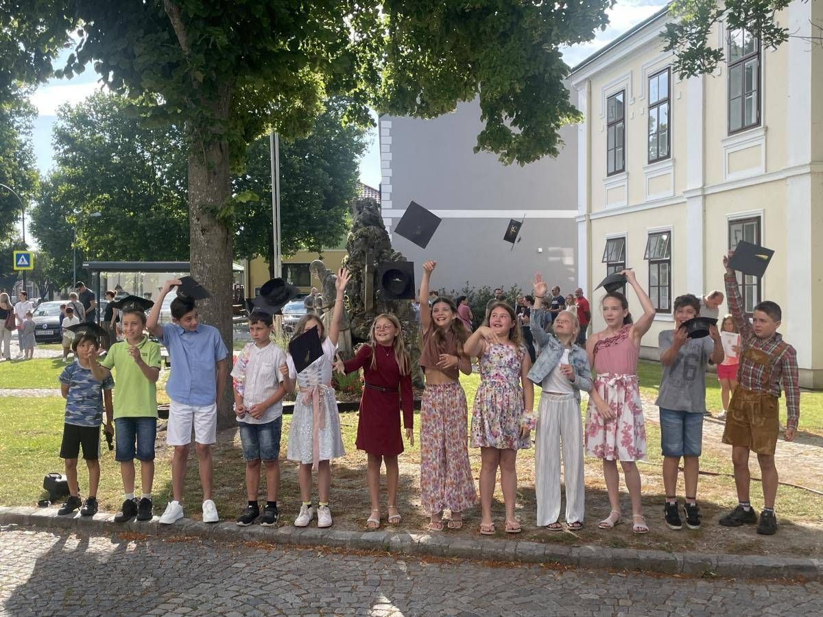 Der letzte Schultag ist jedes Jahr ein Freudentag, trägt aber auch einen Wehmutstropfen in sich. Jedes Jahr freuen wir uns über ein erfolgreiches, interessantes und ereignisreiches Schuljahr hinter uns. Jedes Jahr am Ende heißt es jedoch auch "Abschied nehmen" von unseren Großen, manchmal auch von Kolleginnen des Lehrerinnenteams. So ist das auch heuer: Die großen Kinder breiten ihre Flügel aus und verlassen das kleine, behütete Nest, um ihren Bildungsweg in anderen Schulen fortzusetzen. Koll. Bettina Rosenmayer kehrt an ihre Stammschulezurück, sie half als Personalreserve bei uns aus, nachdem Koll. Elena Reiter-Zamec in den Mutterschutz übergetreten war, Koll. Teresa Teuschler wird sich nun auch bald um ihren Familienzuwachs kümmern, und Fr. Blümel tritt ihr Sabbaticaljahr an.