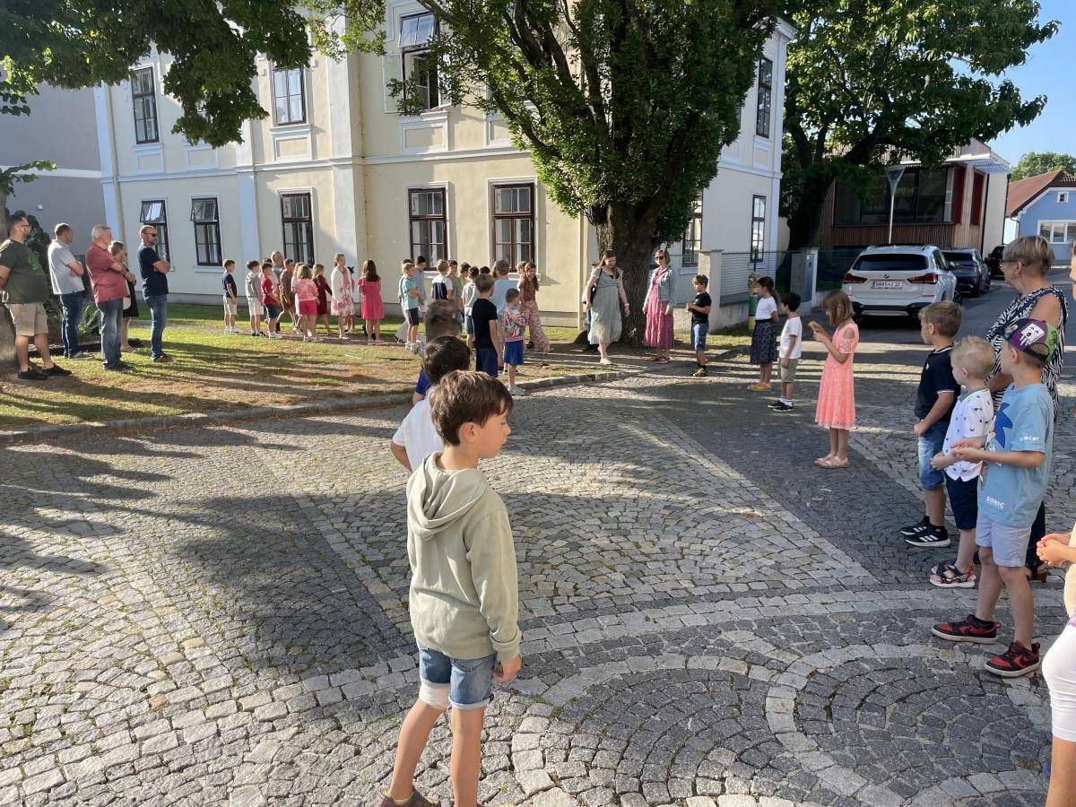 Und diesen Grundsatz haben wir uns auch heuer wieder zu Herzen genommen, als es hieß: Hurra, der Schulschluss ist da! Wieder haben wir unser Schulabschlussfest im Pfarrgarten gefeiert - mit sehr viel Besuch trotz des zuerst nicht so feinen Wetters. Aber der Wettergott meinte es gut mit uns nach einer Verschiebung um 30 min. und sandte uns das allerschönste Partywetter. Unter dem Motto "Gemeinsam sind wir stark" gab es viele Spielestationen, an denen die Erfahrung gemacht wurde, dass es "gemeinsam statt einsam" viel lustiger, zufriedenstellender und schöner ist.Wir bedanken uns hier bei der Pfarre für die Zur-Verfügung-Stellung des Pfarrgartens, beim Elternverein für die wieder perfekte Verpflegung und natürlich bei all unseren Besucherinnen und Besuchern fürs gemeinsame Feiern!