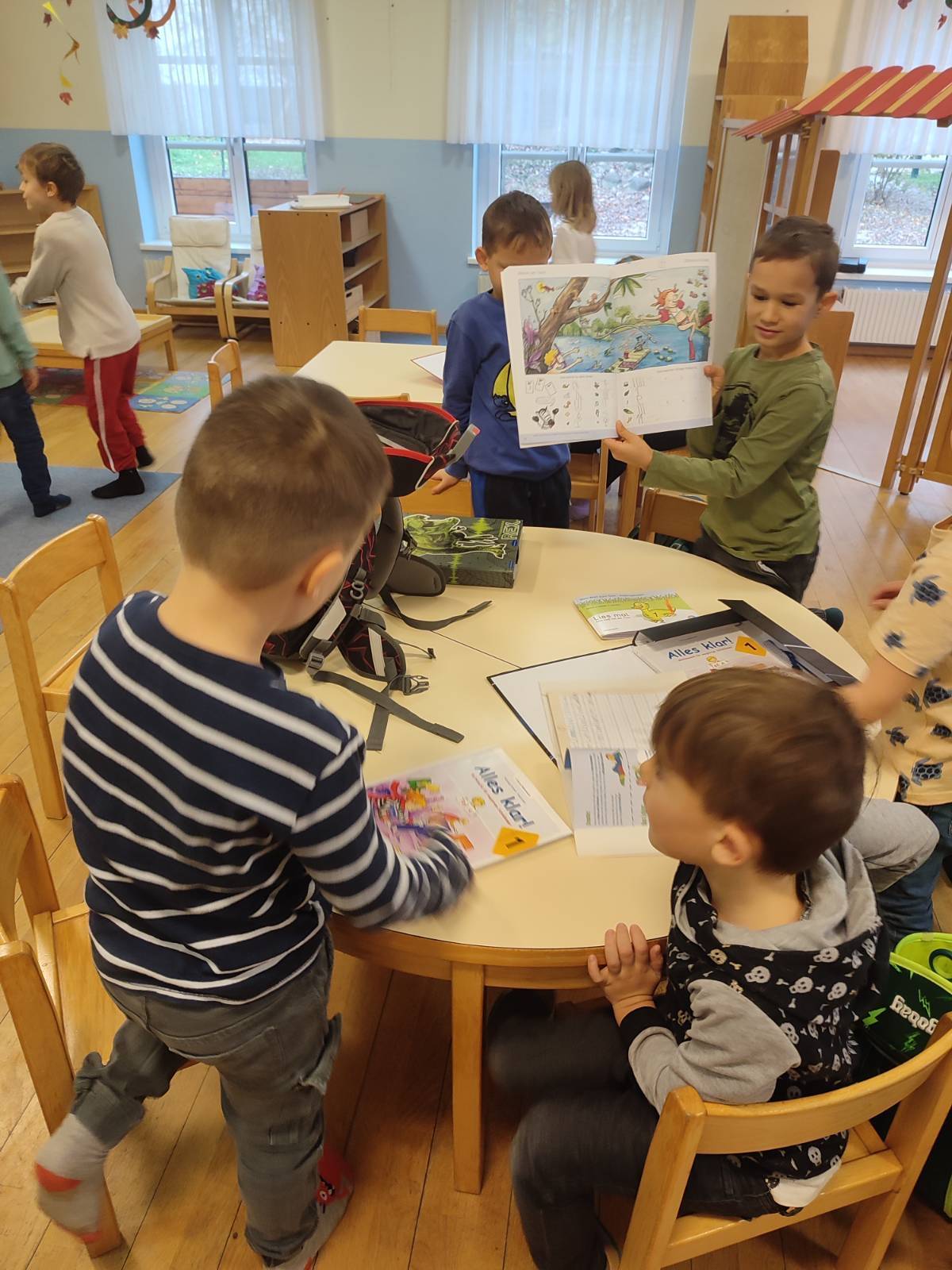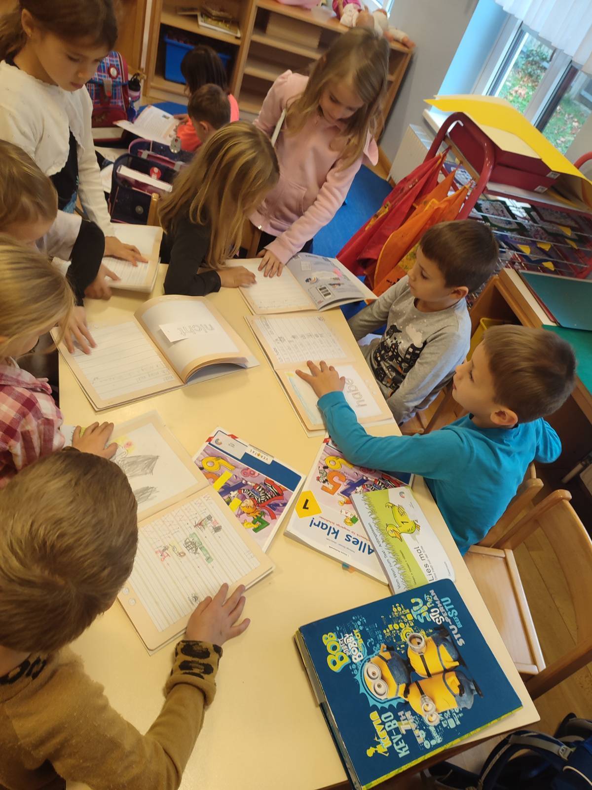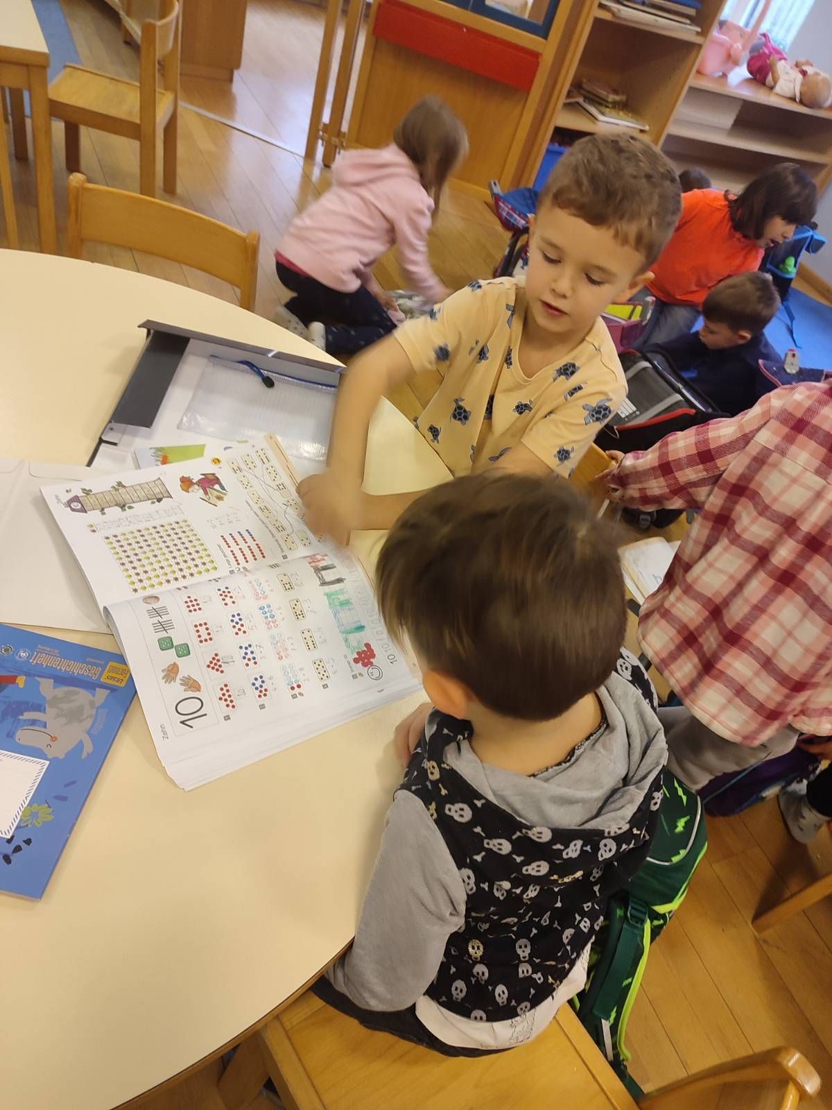 Damit wir aber schon im Herbst des Vorjahres wissen, was so auf uns zukommen wird, besuchen uns die ehemaligen Kindergartenkinder (nunmehr schon Erstklässler) mit ihren Schultaschen im Kiga. Da wird dann über Erlebnisse erzählt, vom Schulleben berichtet, werden die Schulutensilien begutachtet, auf alle Fälle ein bisschen gemeinsam gespielt und natürlich in der Gruppe die Jause eingenommen.