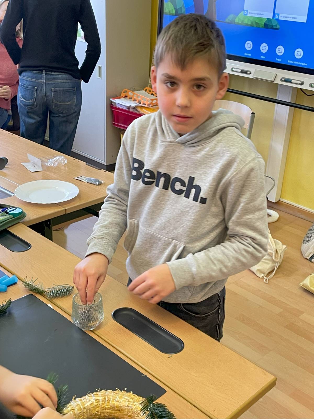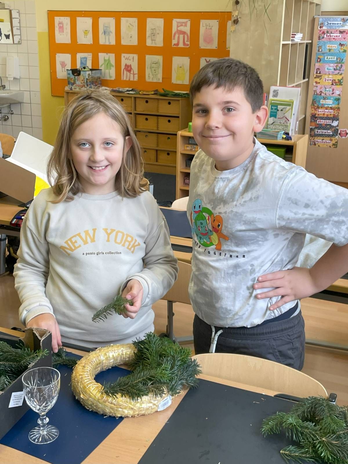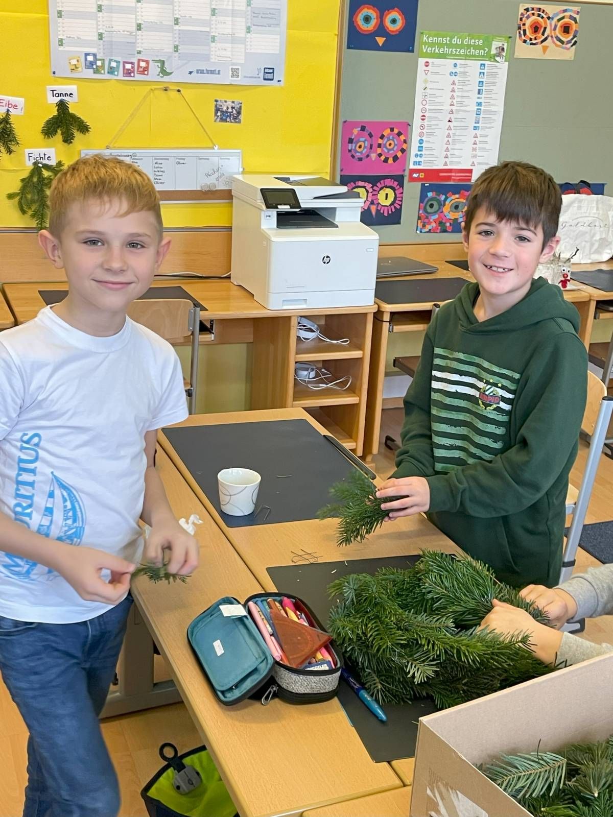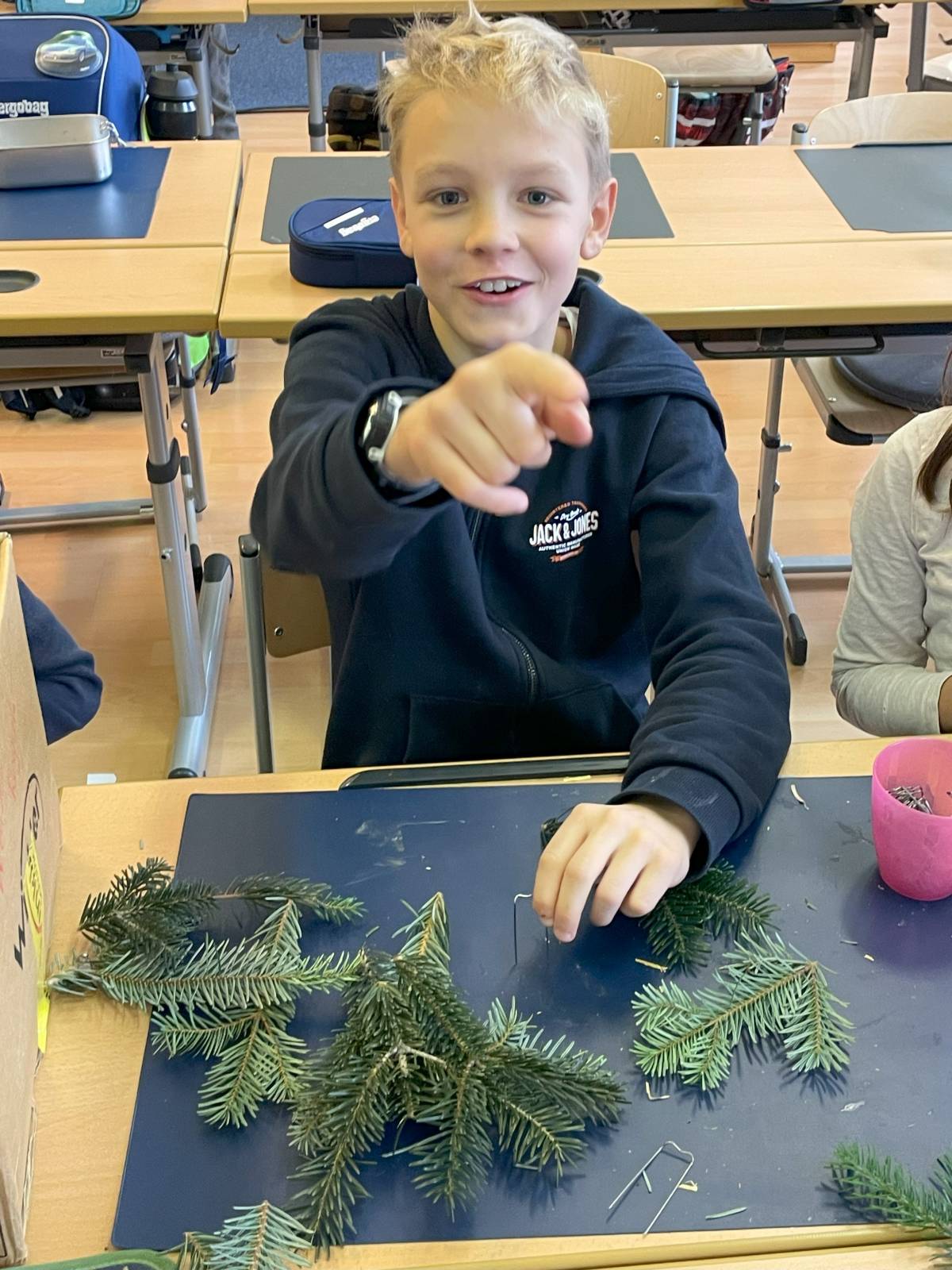 Es blieb nur noch die Frage, woher unsere Adventkränze für die einzelnen Klassen kommen würden ... die Antwort war ganz klar: Wie jedes Jahr haben auch heuer unsere Großen 4 tolle Kränze aus Tannenreisig gesteckt und anschließend mit Kerzen und Dekorationsmaterial verziert.
