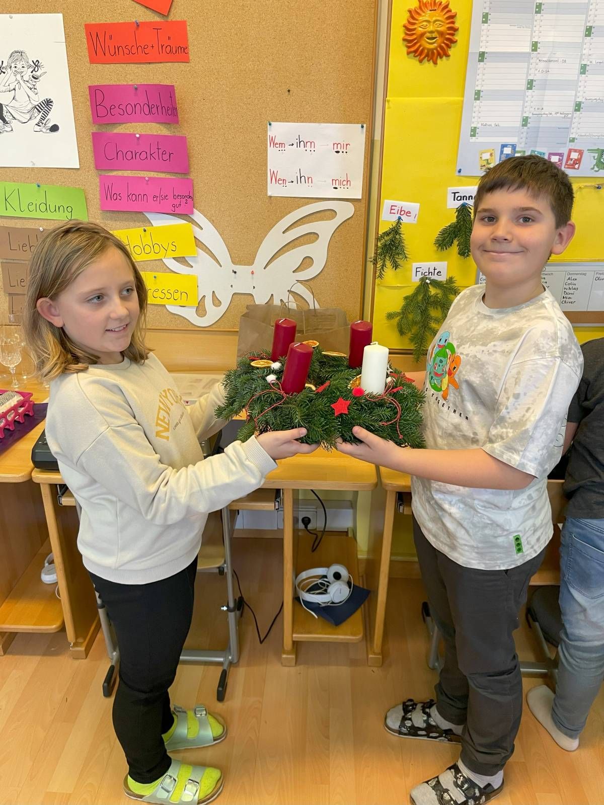 Der Adventkranz ist ein wichtiger Bestandteil der vorweihnachtlichen Dekoration in fast allen Häusern, der kaum mehr wegzudenken ist. Wie er entstanden ist, haben unsere Kinder im Rahmen der Vorbereitungen zur Adventfeier erfahren.