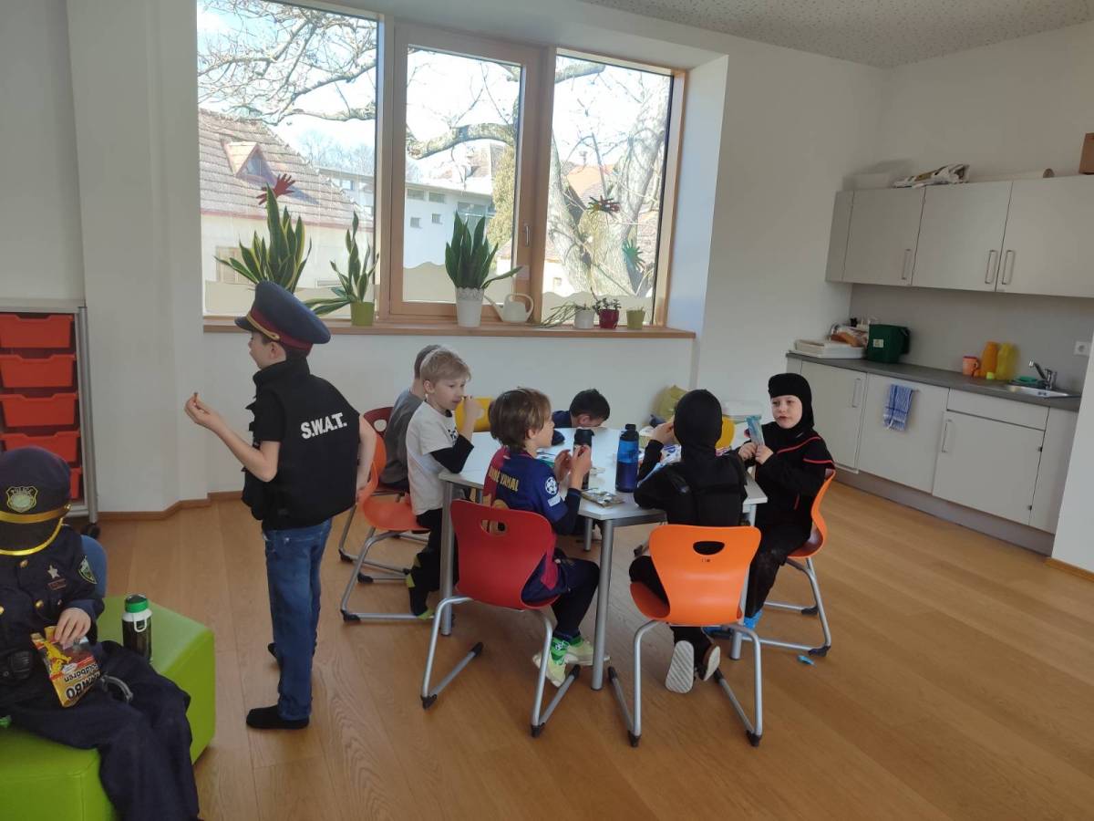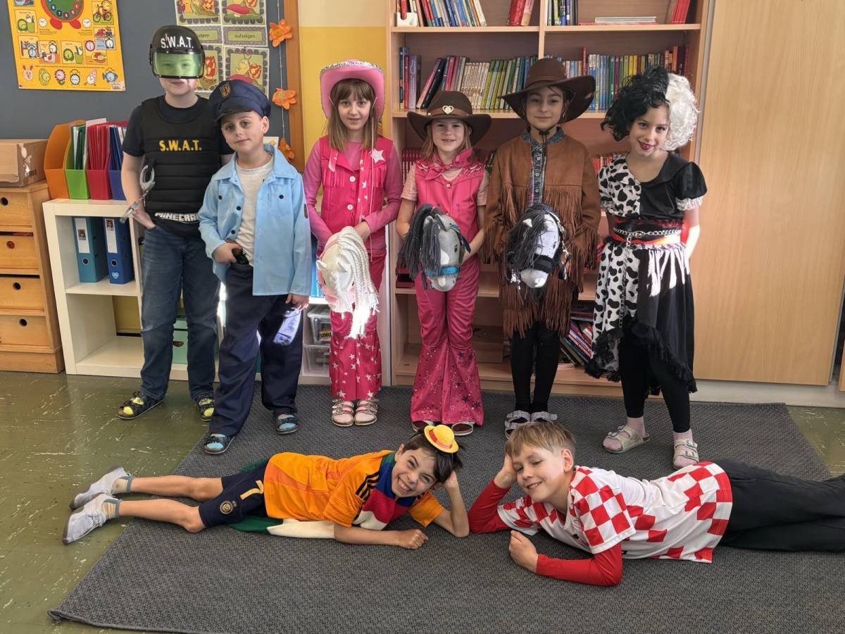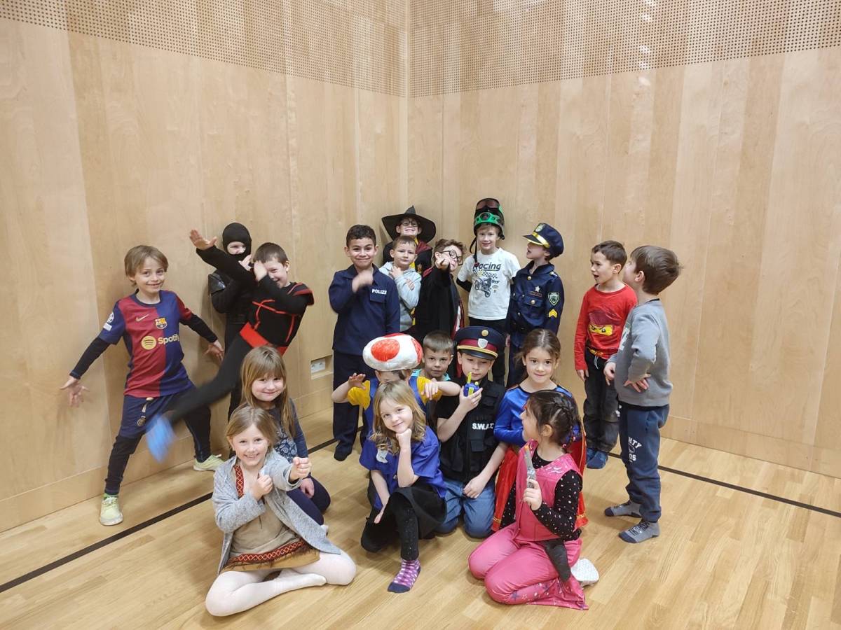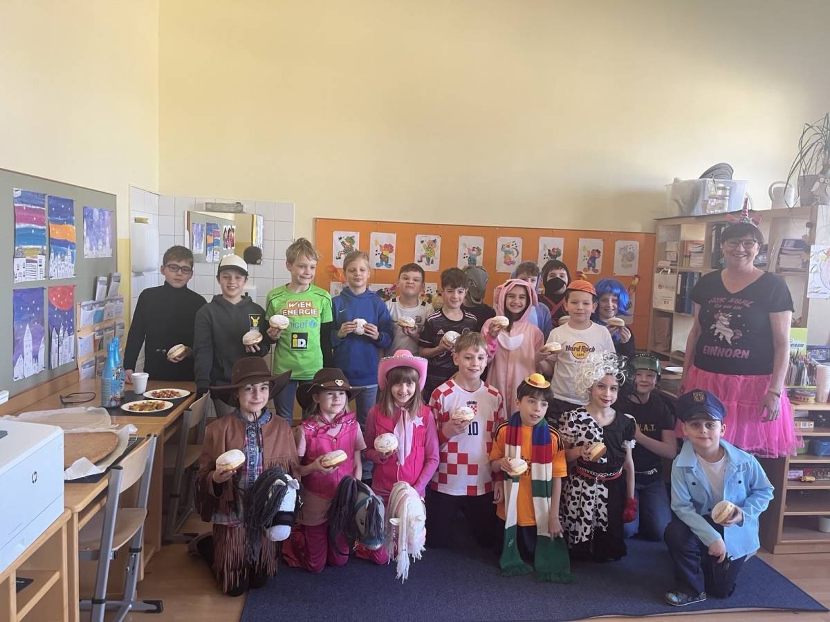 Auch heuer hatten wir wieder großen Besuch: Alles, was "Rang und Namen" hat, konnte am Faschingdienstag bei uns in der Schule begrüßt werden. Da tummelten sich Musketiere, Bodybuilder, berühmte Persönlichkeiten aus dem Bereich Sport, Adelige, versch. Vertreter/innen aus dem Tierreich uvm. bei uns in der Schule, um gemeinsam einen schönen und lustigen Schulvormittag zu verbringen. Lehrerinnen waren auch heuer keine anwesend - vielmehr konnten wir einen Clown, eine Westernreiterin, einen Elefanten, einen Schmetterling und einen Hai in der illustren Runde begrüßen.