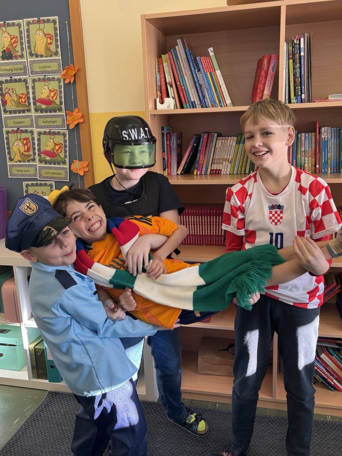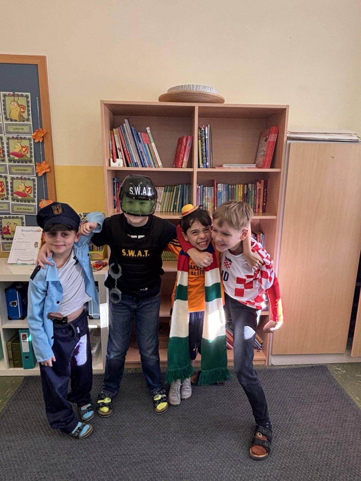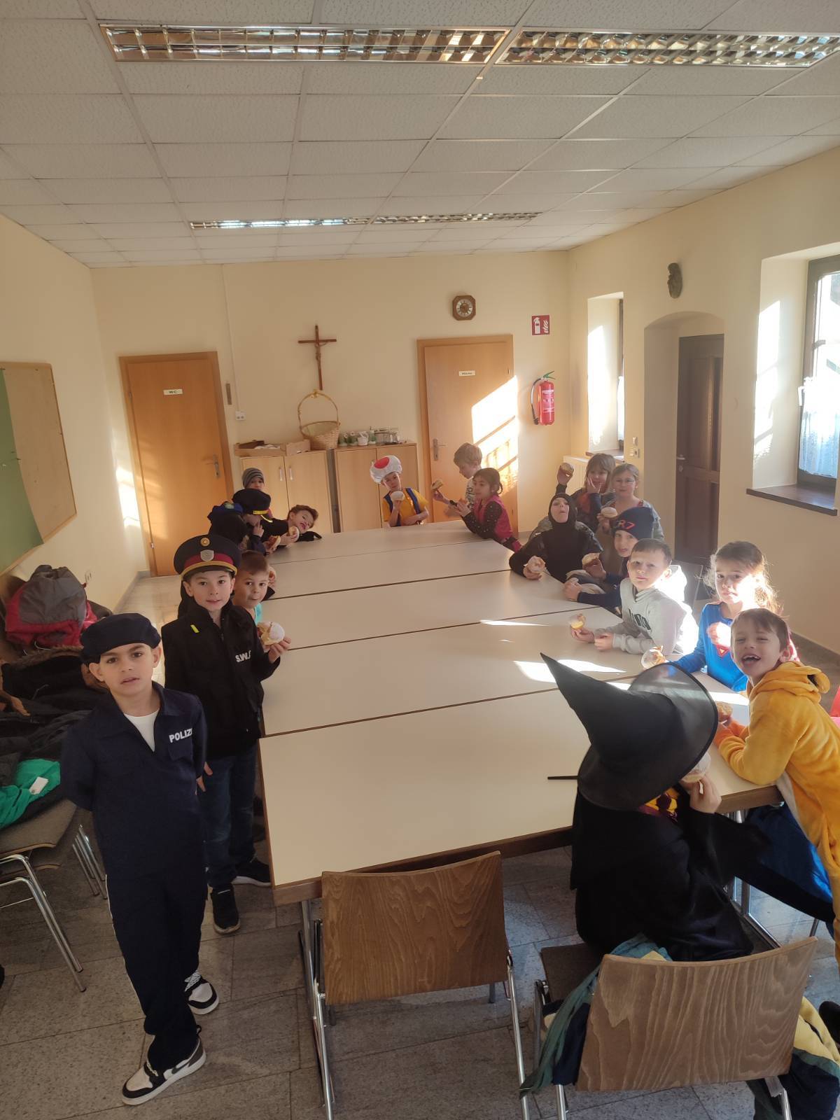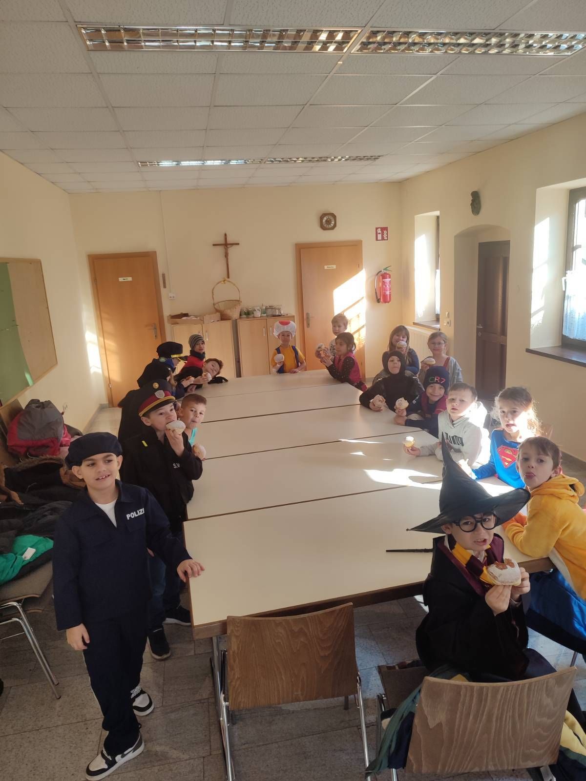 Auch heuer hatten wir wieder großen Besuch: Alles, was "Rang und Namen" hat, konnte am Faschingdienstag bei uns in der Schule begrüßt werden. Da tummelten sich Musketiere, Bodybuilder, berühmte Persönlichkeiten aus dem Bereich Sport, Adelige, versch. Vertreter/innen aus dem Tierreich uvm. bei uns in der Schule, um gemeinsam einen schönen und lustigen Schulvormittag zu verbringen. Lehrerinnen waren auch heuer keine anwesend - vielmehr konnten wir einen Clown, eine Westernreiterin, einen Elefanten, einen Schmetterling und einen Hai in der illustren Runde begrüßen.