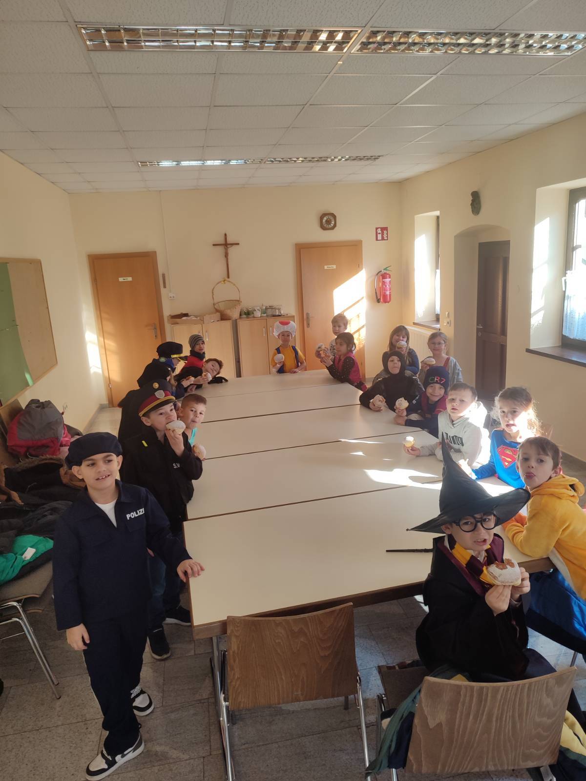 Auch ein Einhorn ließ sich blicken und hatte im Schlepptau ganz viele köstliche Krapfen - wir danken unserer Fr. Bgmin. Christine Sollinger für die jährliche Spende der Gemeinde und freuen uns auf das nächste Jahr, wenn es wieder heißt: "Aufgepasst, Narren unterwegs!"