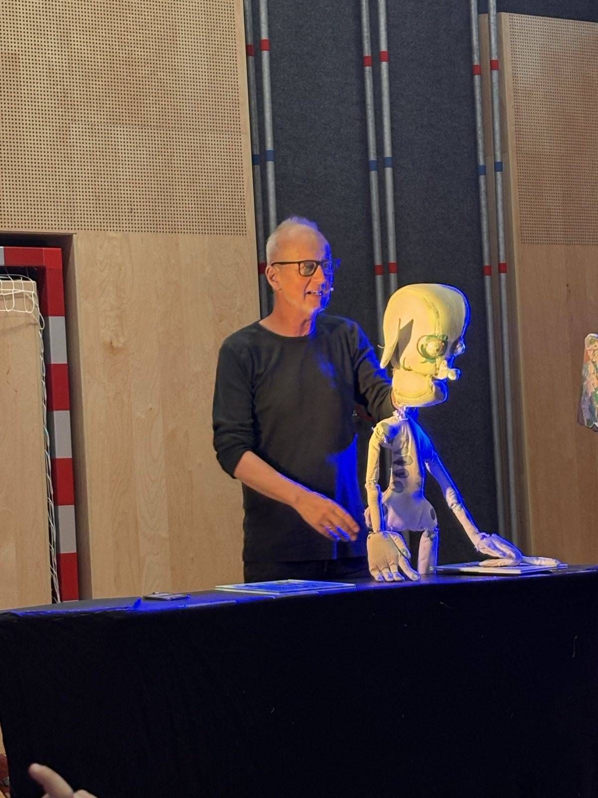 Stefan Karch ist Theaterspieler, Autor, Illustrator und Puppenspieler, sicherlich auch Schneider und vieles mehr, denn er kommt zu uns an die Schule, spielt ein kleines Theaterstück vor (das er womöglich selbst geschrieben hat) und lässt seine Puppen, die er selbst entworfen und hergestellt hat, als Hauptdarsteller/innen auftreten. Im Anschluss dürfen wir dann einen Blick "hinter die Kulissen" werfen und die Puppen genau unter die Lupe nehmen.
